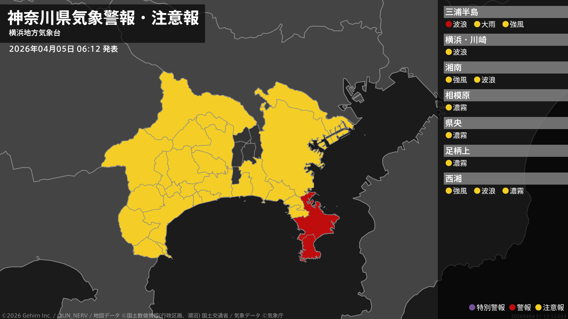 【神奈川県 気象警報・注意報 2026年04月05日 06:12】