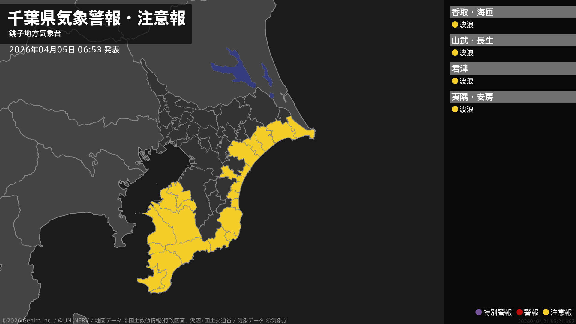 【千葉県 気象警報・注意報 2026年04月05日 06:53】