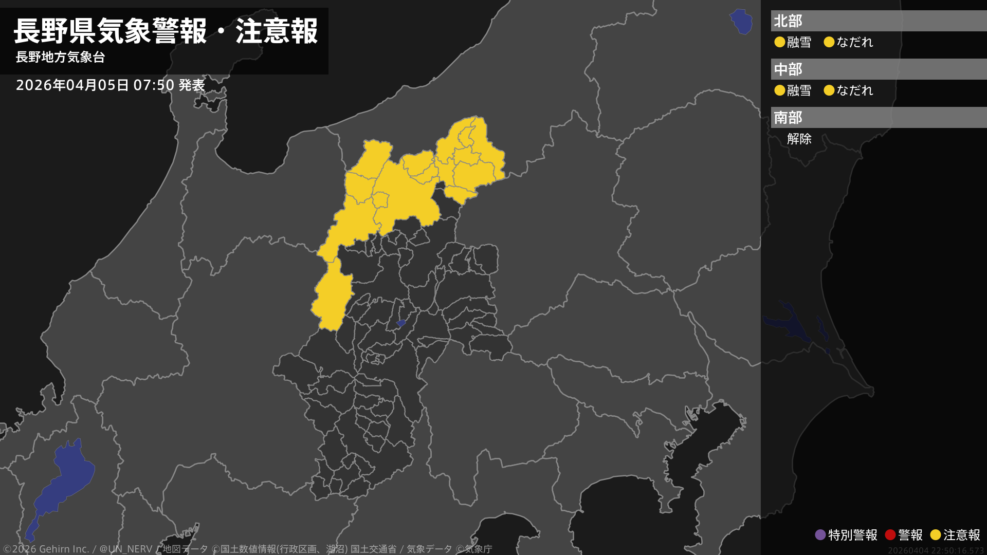 【長野県 気象警報・注意報 2026年04月05日 07:50】