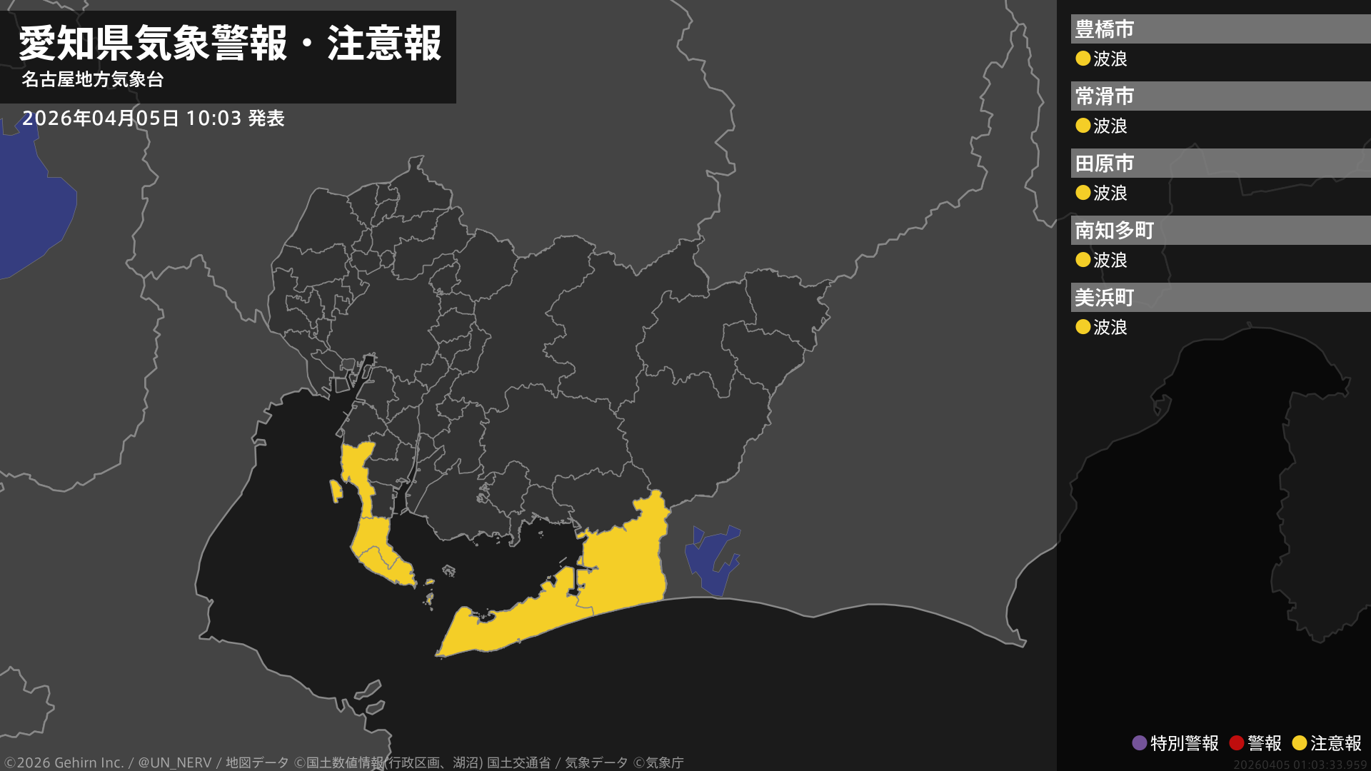 【愛知県 気象警報・注意報 2026年04月05日 10:03】