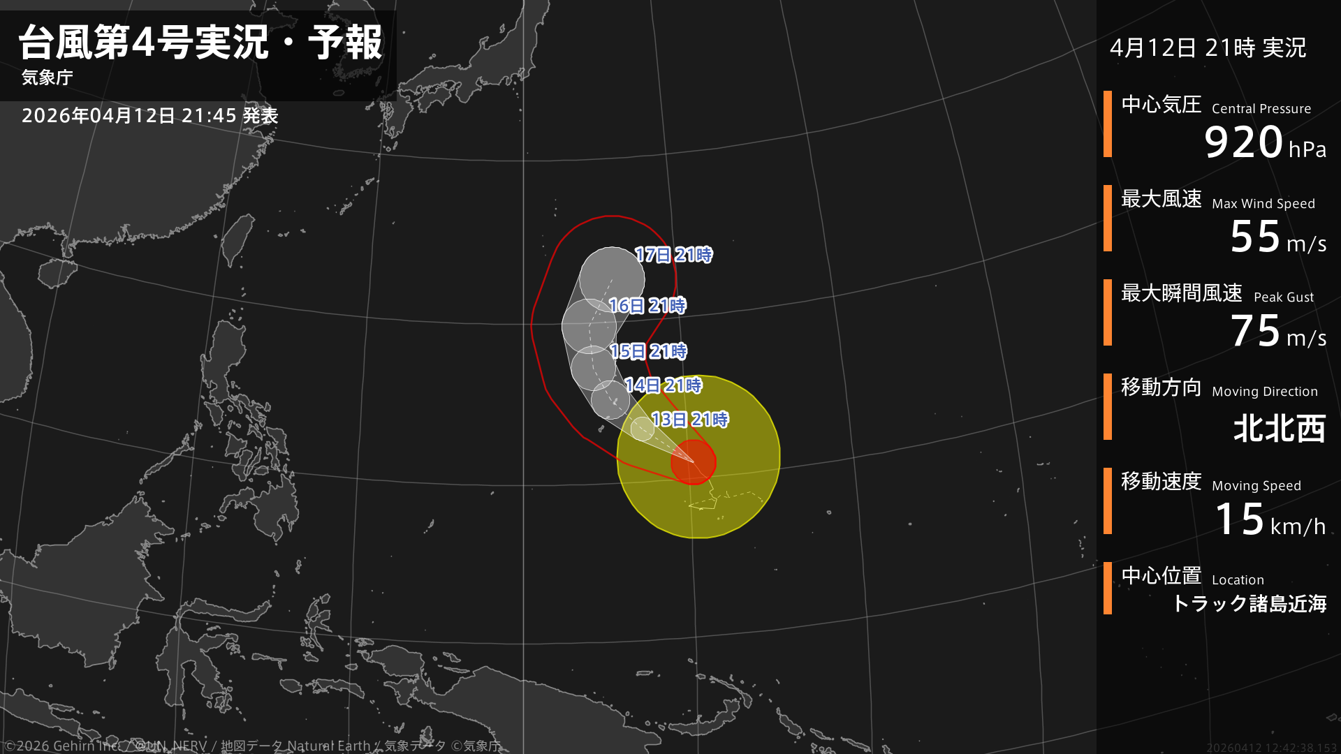 【台風第4号実況・予報 2026年04月12日 21:42】