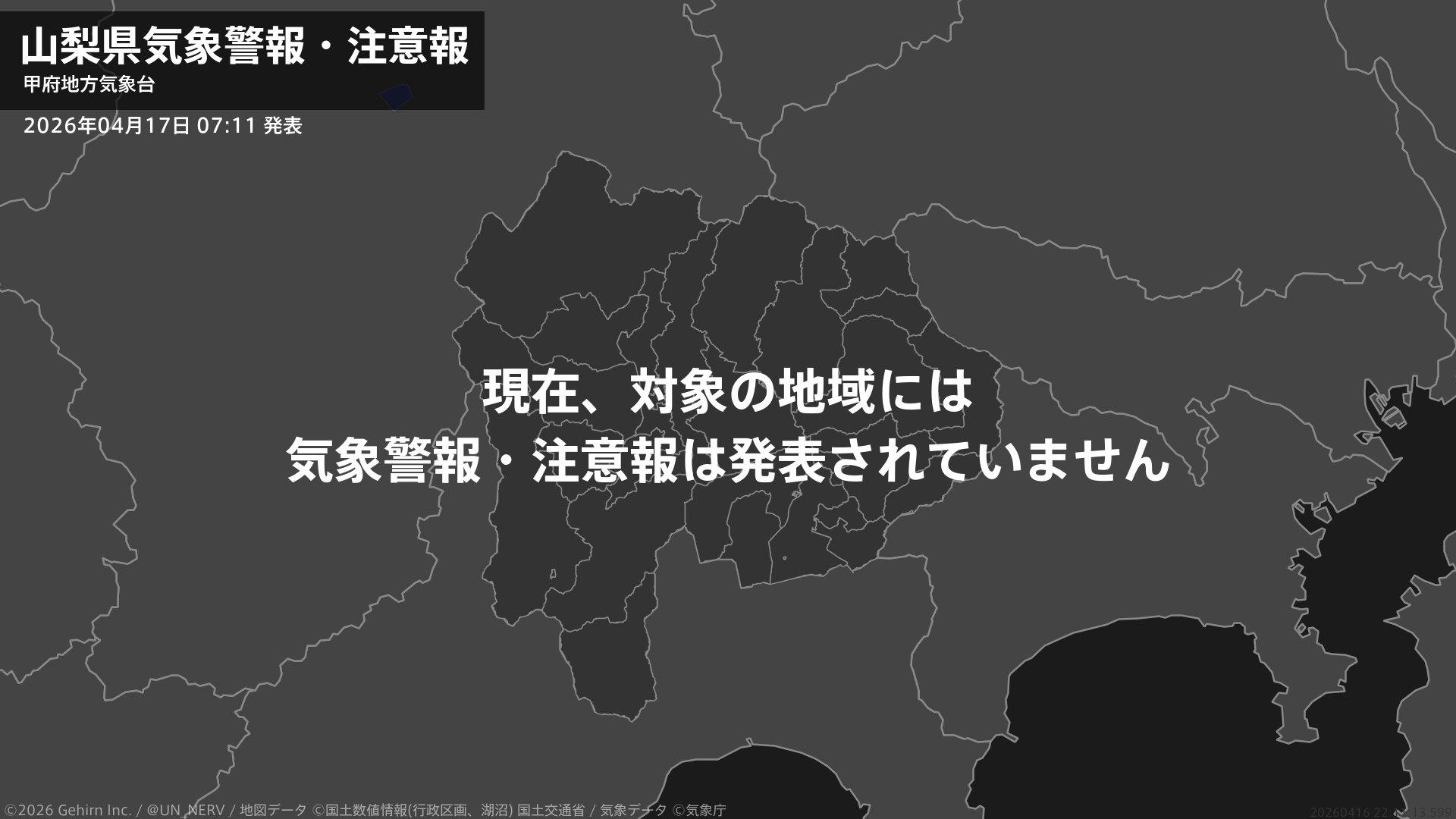 【山梨県 気象警報・注意報 2026年04月17日 07:11】