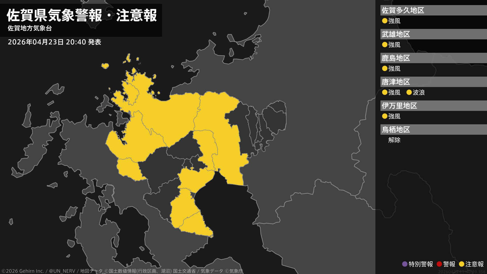 【佐賀県 気象警報・注意報 2026年04月23日 20:40】
