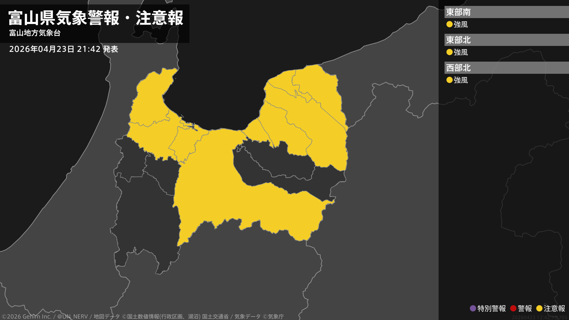 【富山県 気象警報・注意報 2026年04月23日 21:42】
