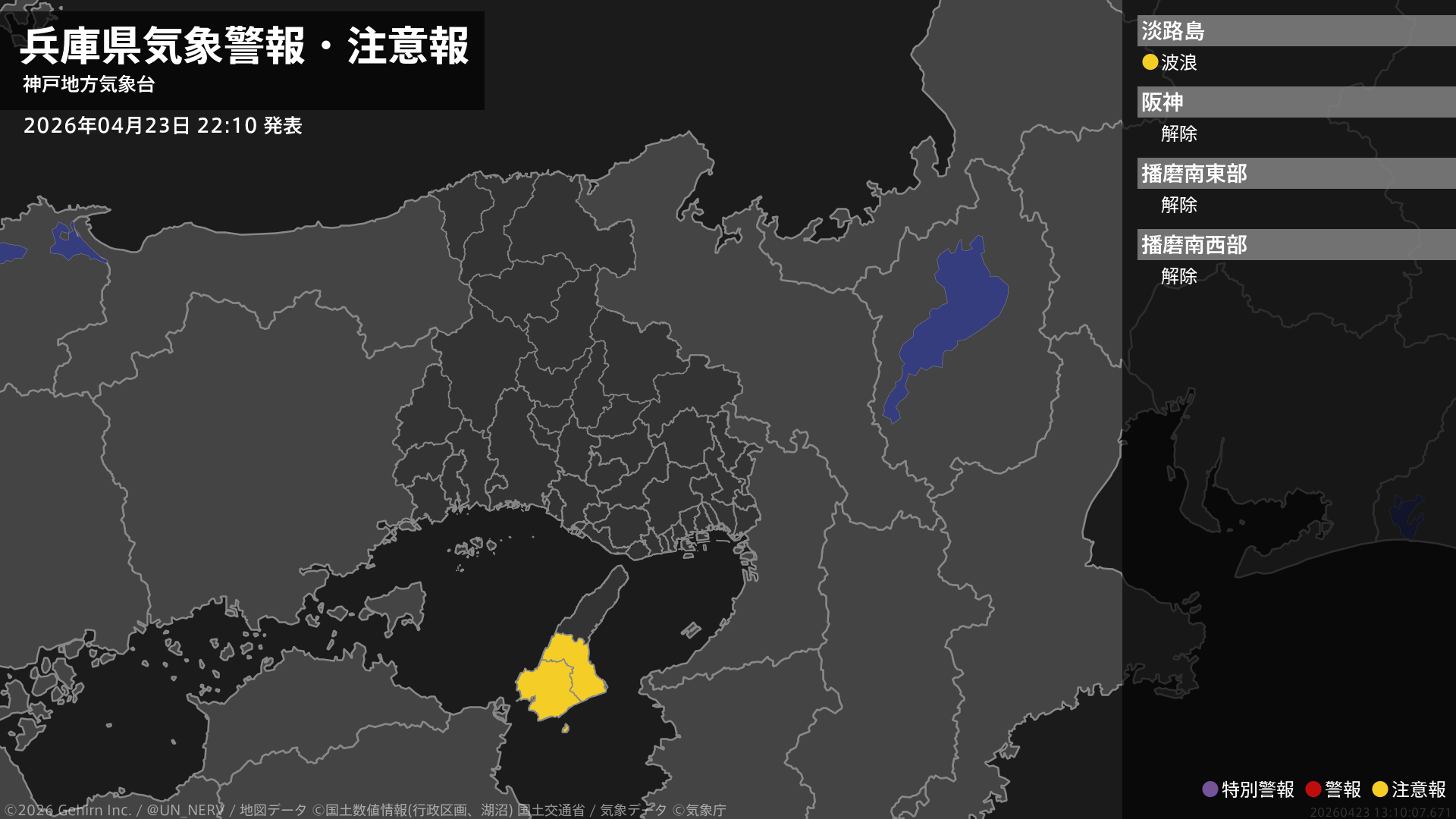 【兵庫県 気象警報・注意報 2026年04月23日 22:10】