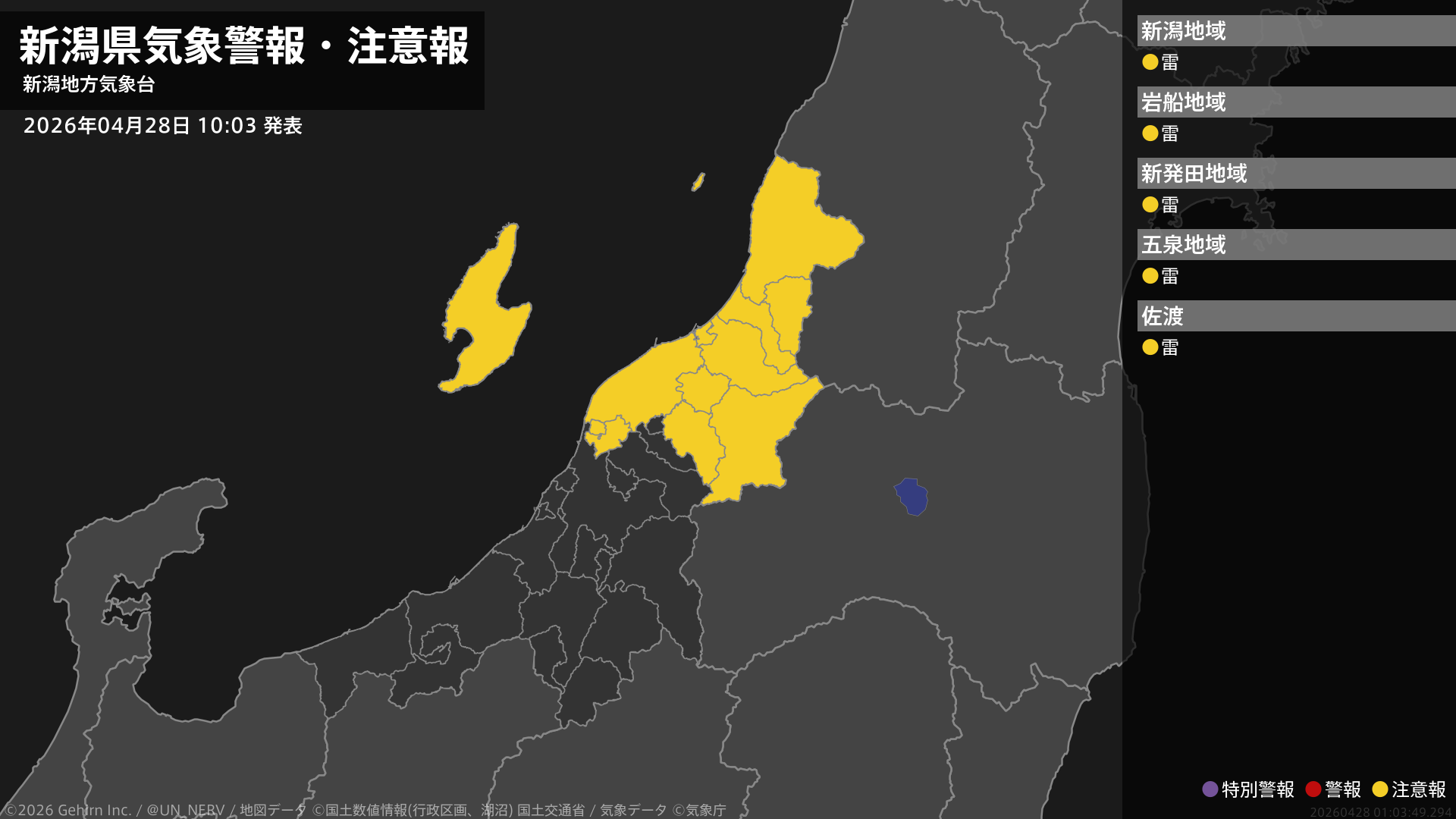 【新潟県 気象警報・注意報 2026年04月28日 10:03】