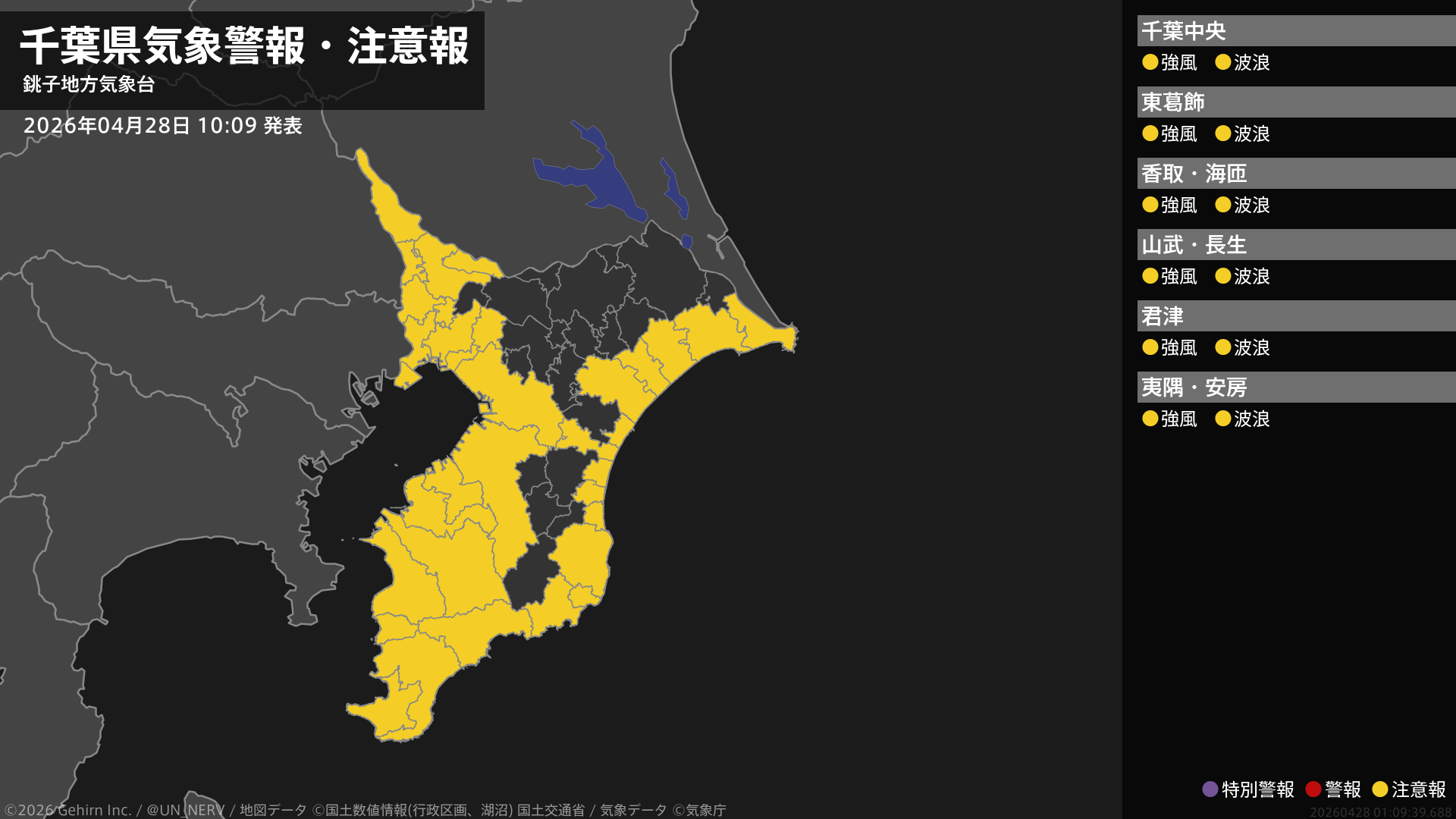 【千葉県 気象警報・注意報 2026年04月28日 10:09】