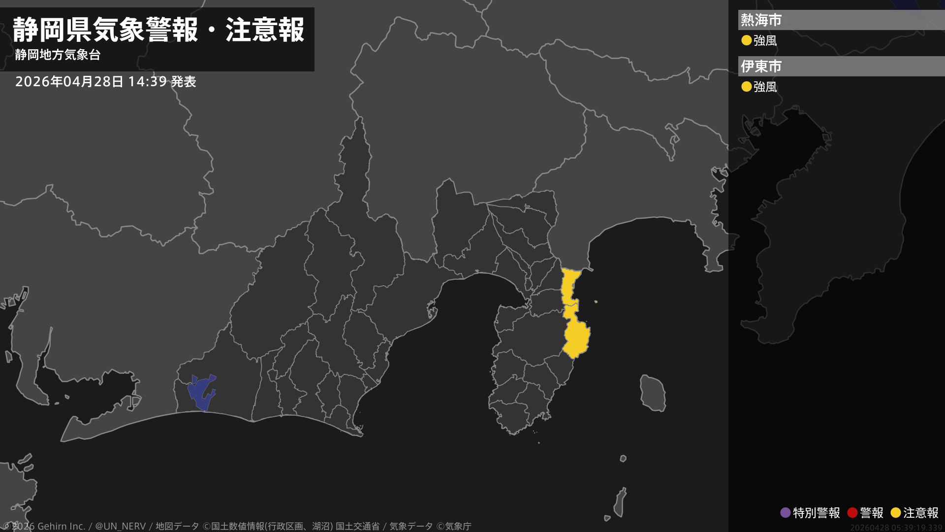 【静岡県 気象警報・注意報 2026年04月28日 14:39】