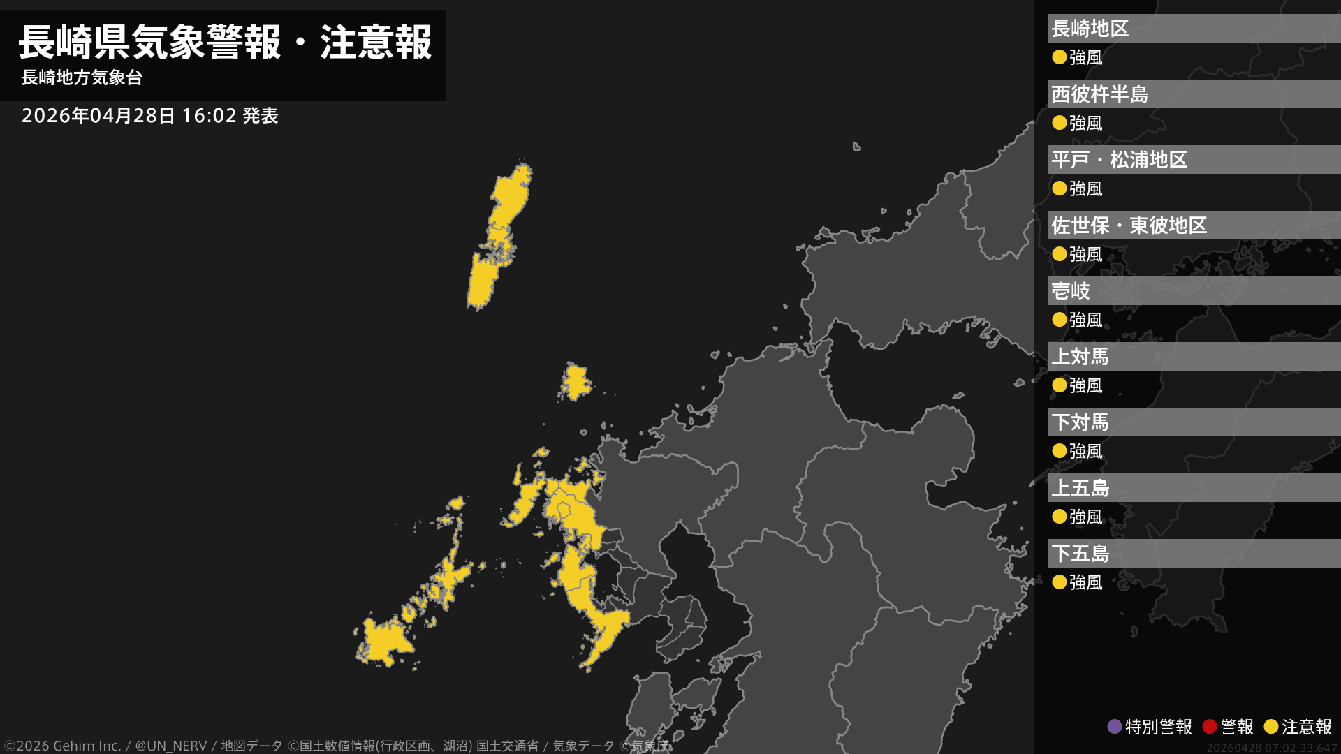 【長崎県 気象警報・注意報 2026年04月28日 16:02】