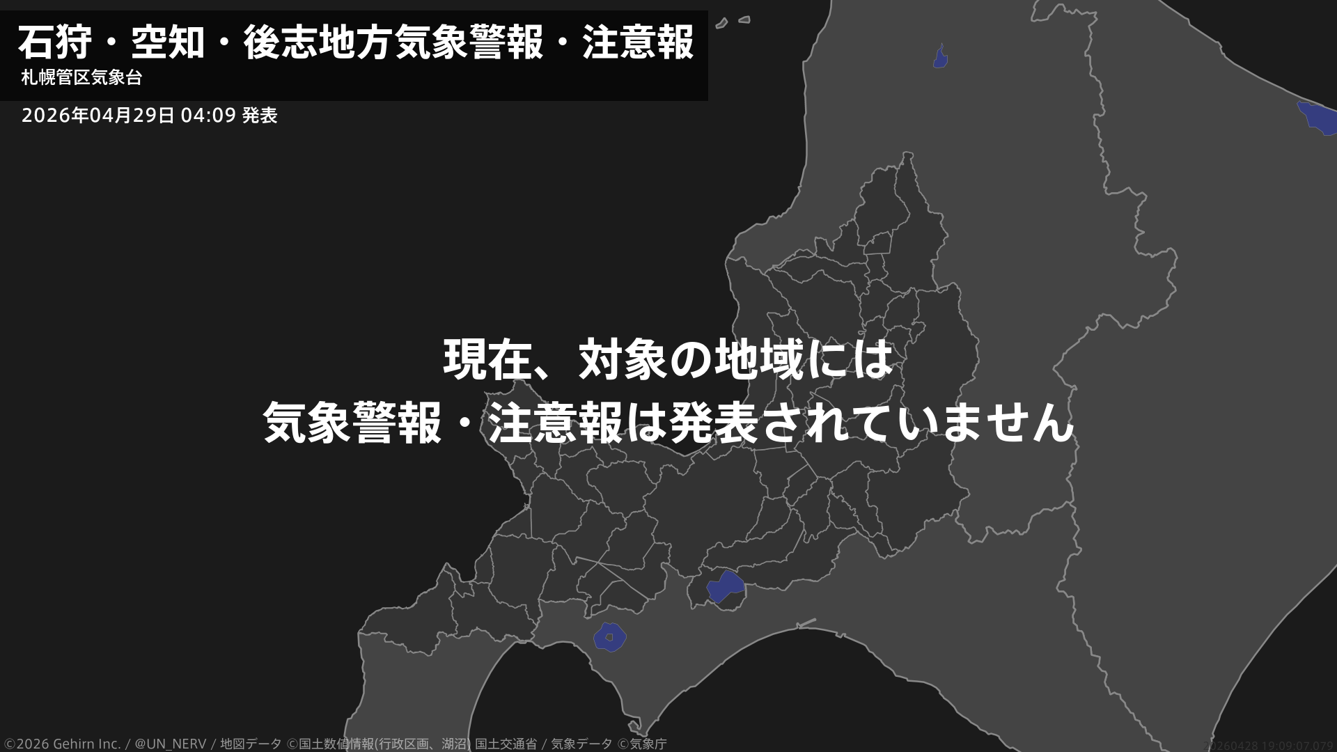 【石狩・空知・後志地方 気象警報・注意報 2026年04月29日 04:09】注意報を解除します。#気象警報注意報 #石狩地方 #空知地方 #後志地方