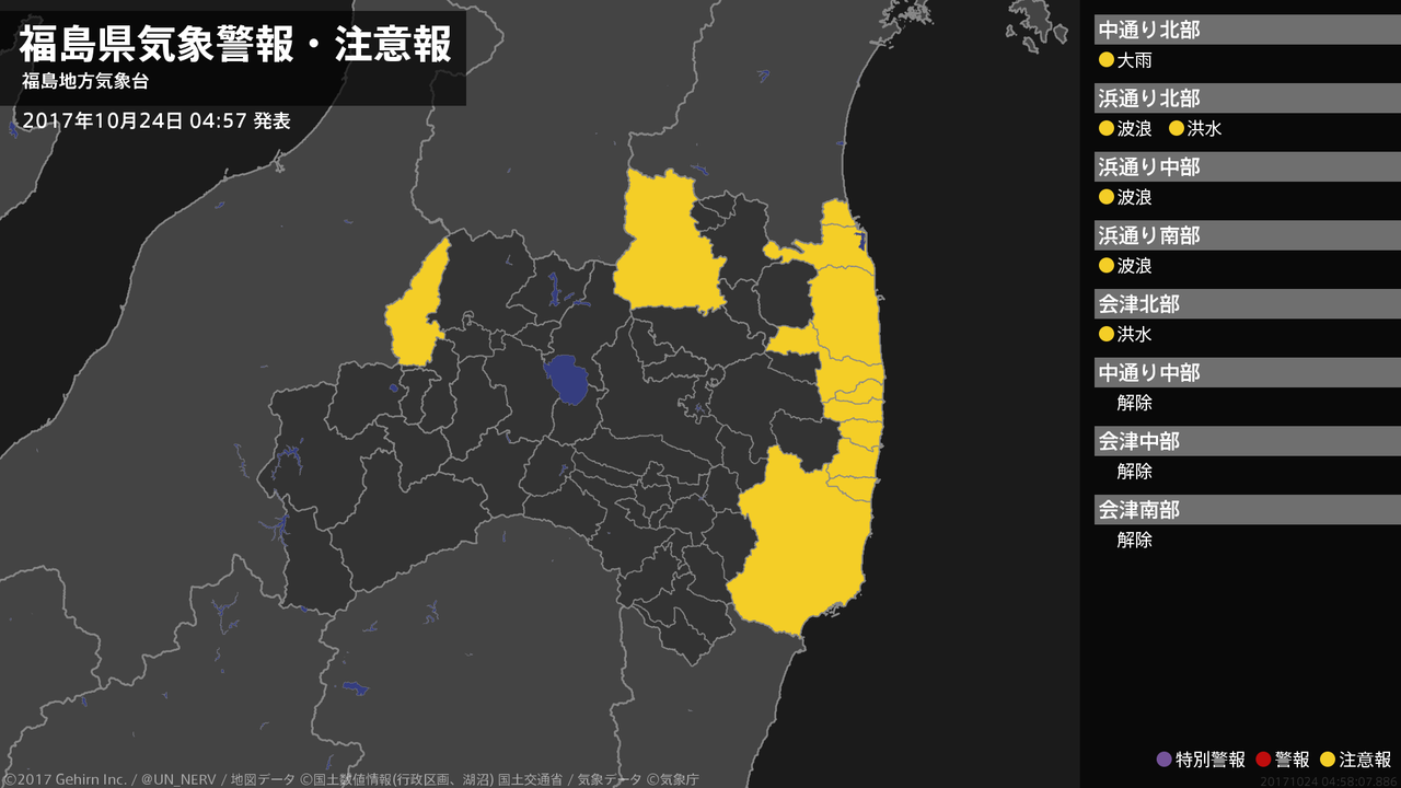 【福島県 気象警報・注意報 2017年10月24日 04:58】