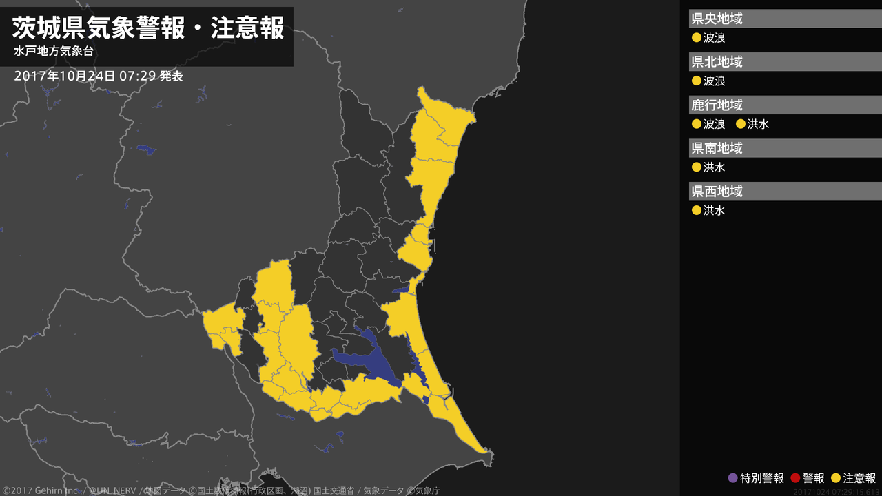 【茨城県 気象警報・注意報 2017年10月24日 07:29】