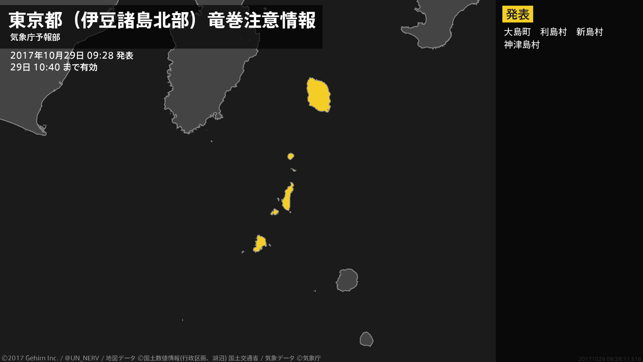 【東京都(伊豆諸島北部) 竜巻注意情報】