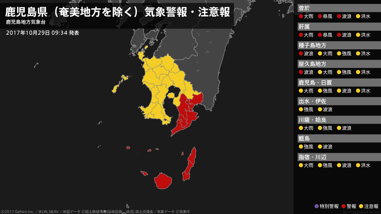 【鹿児島県(奄美地方を除く) 気象警報 2017年10月29日 09:34】