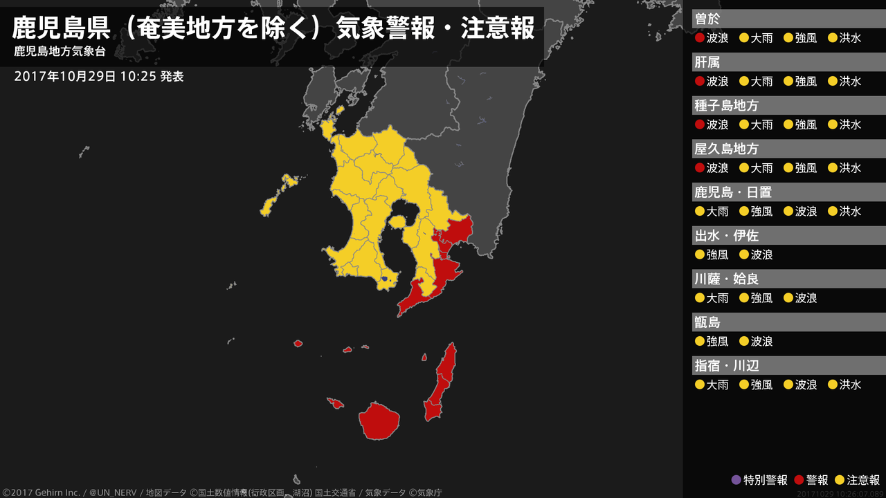 【鹿児島県(奄美地方を除く) 気象警報 2017年10月29日 10:26】