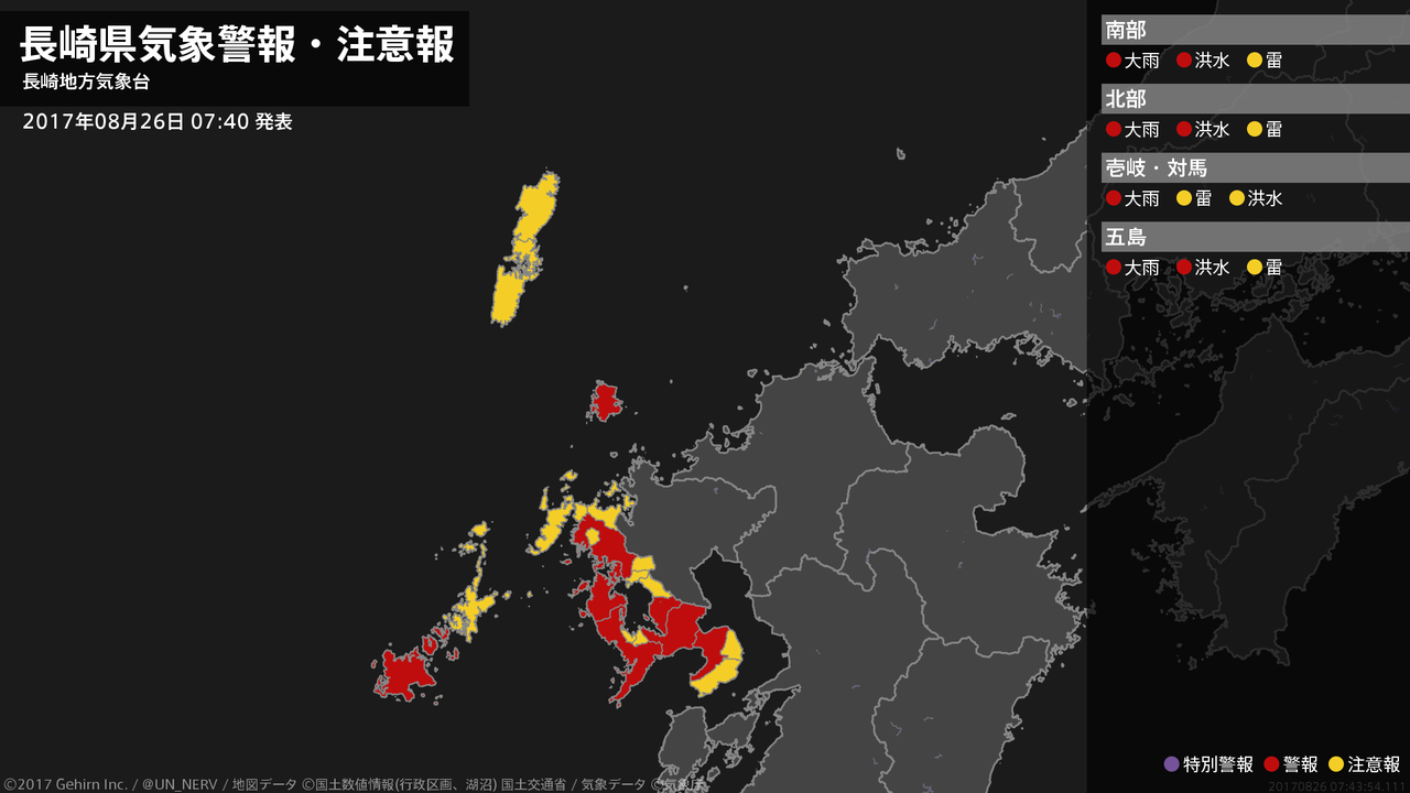 【長崎県 気象警報 2017年08月26日 07:43】