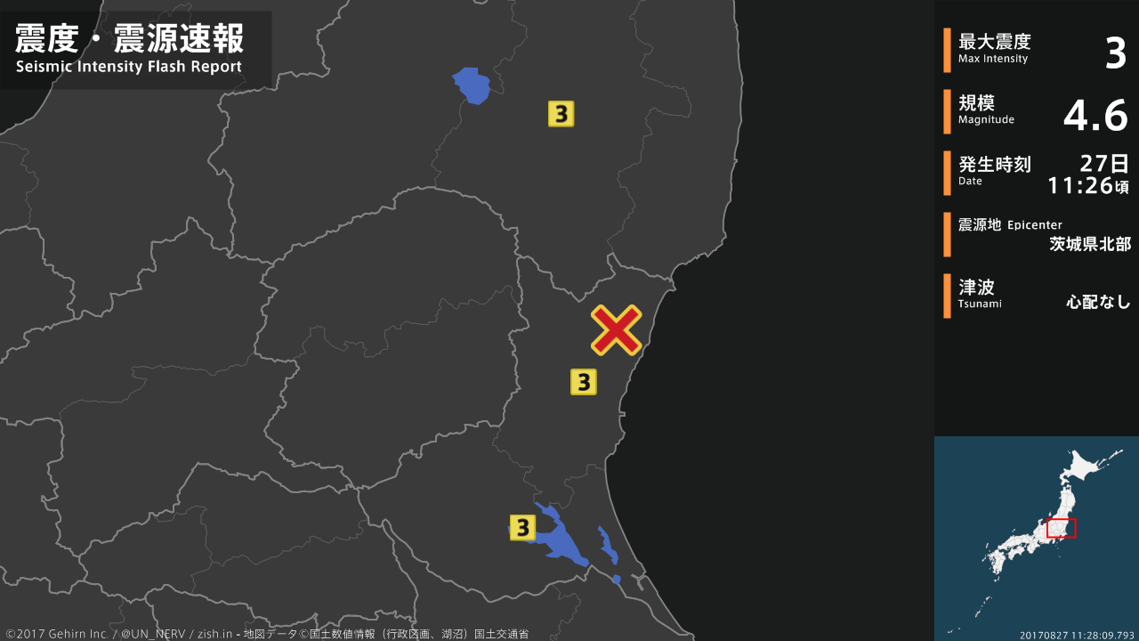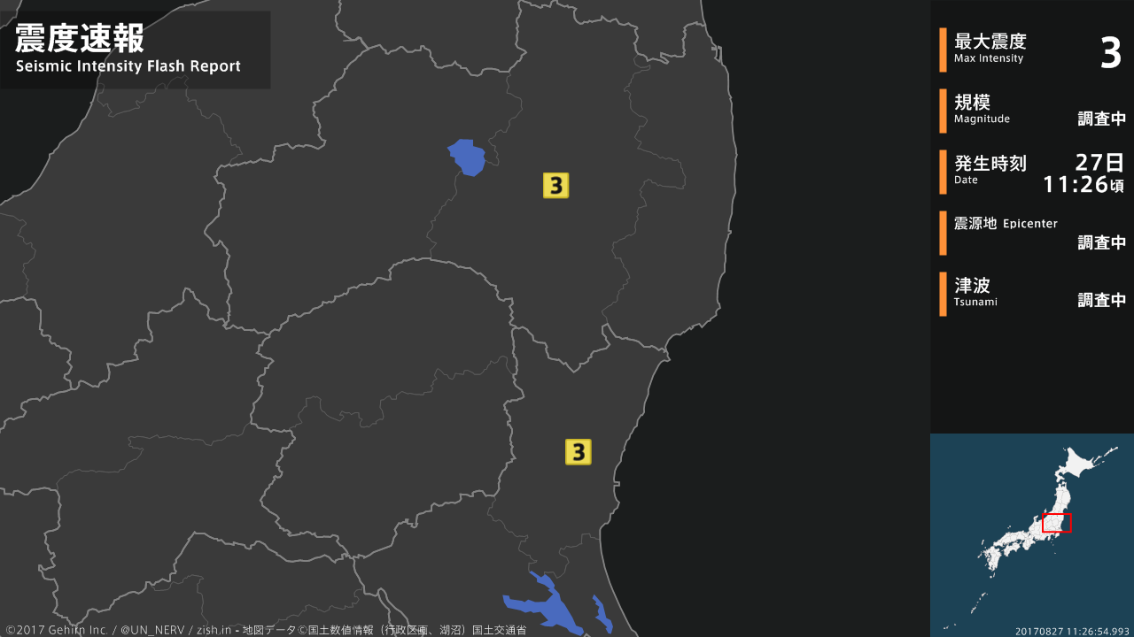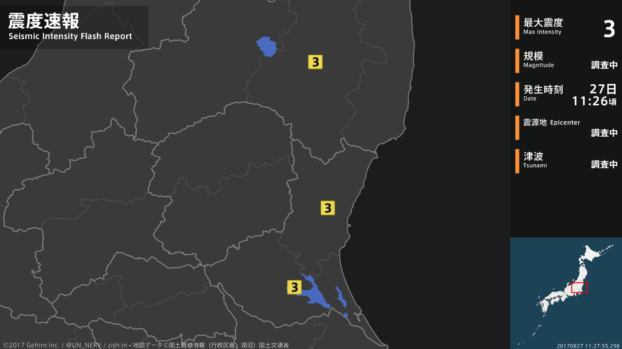 【緊急地震速報 第3報 2017年8月27日】
