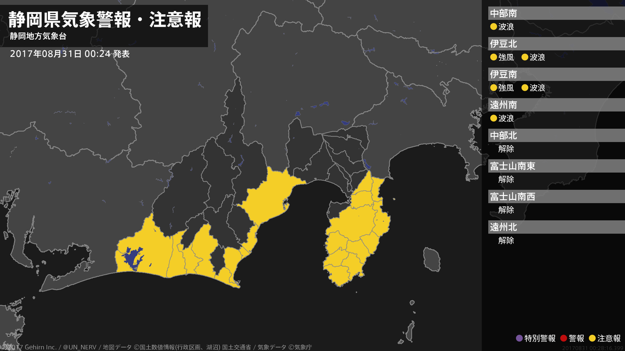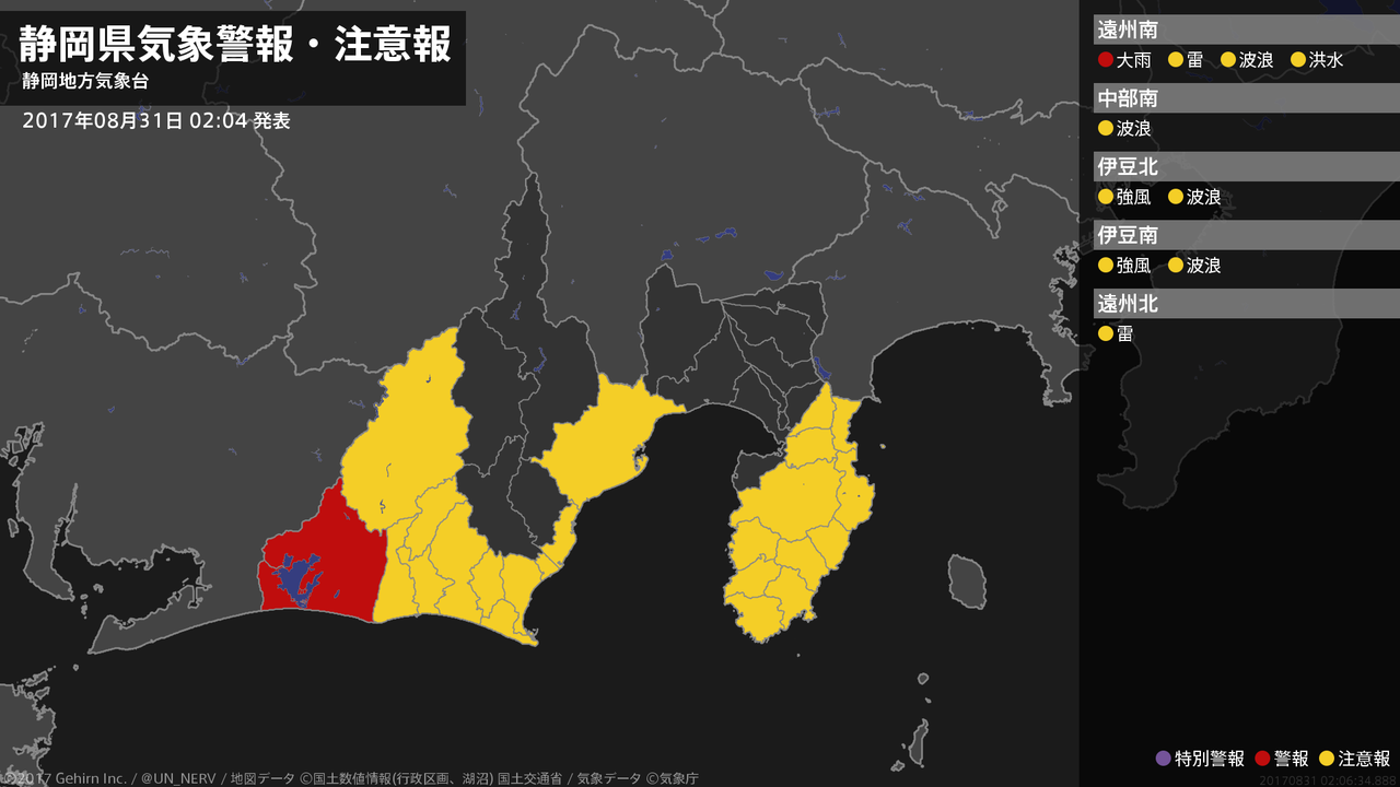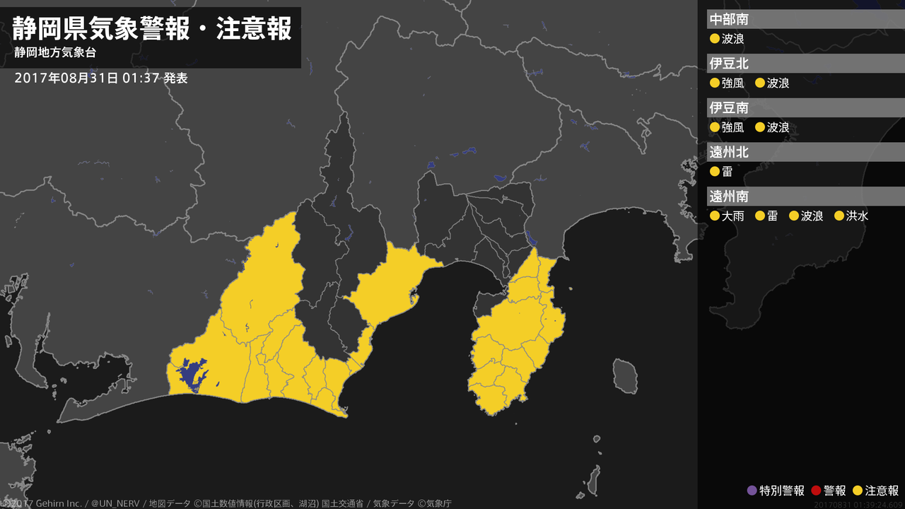 【静岡県 気象警報・注意報 2017年08月31日 01:39】
