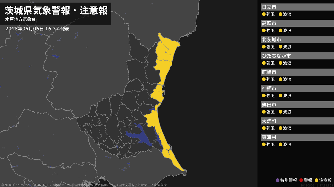 【大雨と雷及び突風に関する全般気象情報 2018年05月06日 16:30】