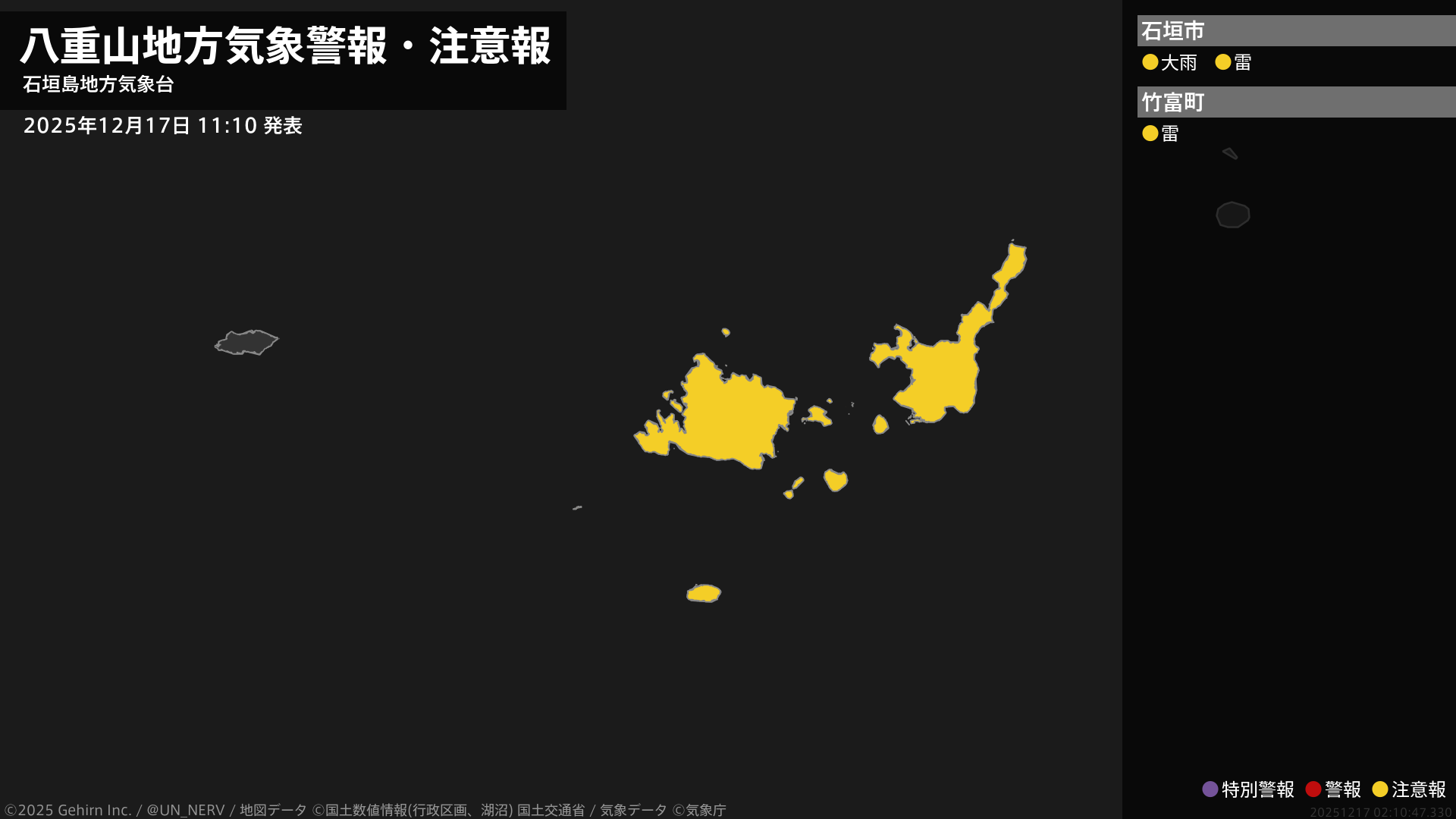 【八重山地方 気象警報・注意報 2025年12月17日 11:10】