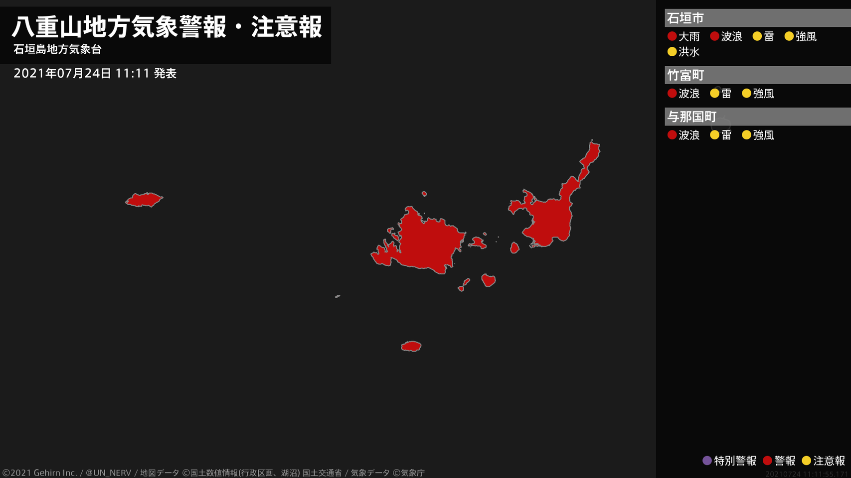 【八重山地方 気象警報・注意報 2021年07月24日 11:11】