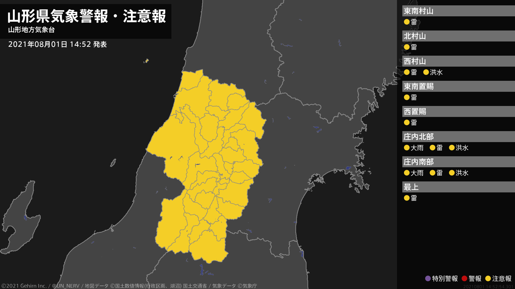 【山形県 記録的短時間大雨情報 2021年08月01日 10:25】