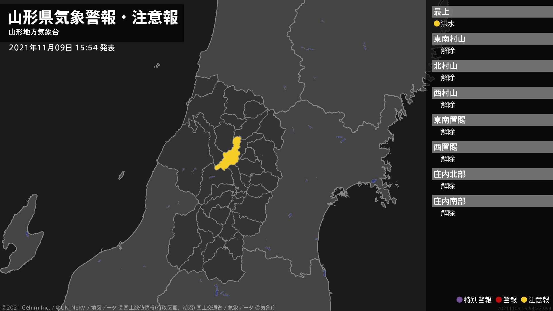【大雨と雷及び突風に関する全般気象情報 2021年11月09日 16:40】