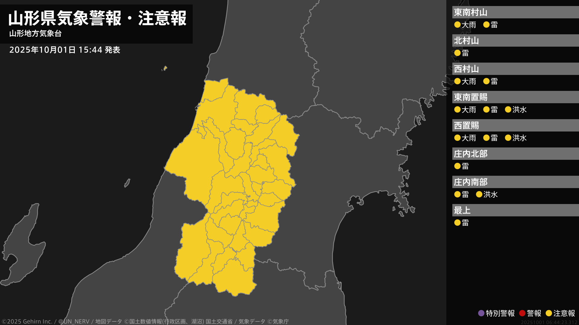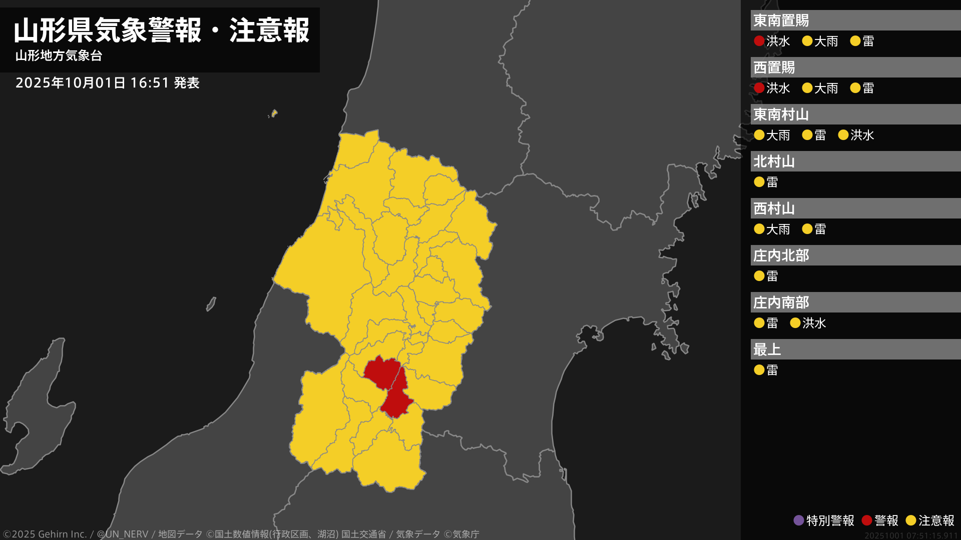 【大雨と雷及び突風に関する全般気象情報 2025年10月01日 16:45】