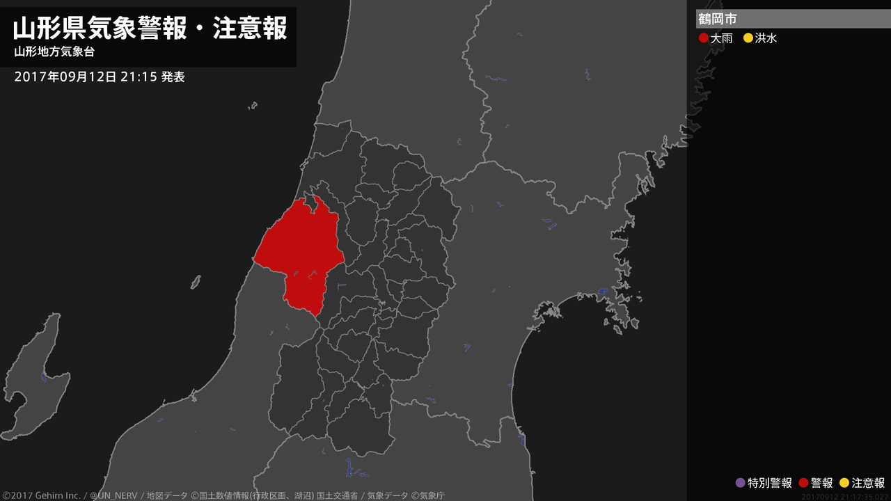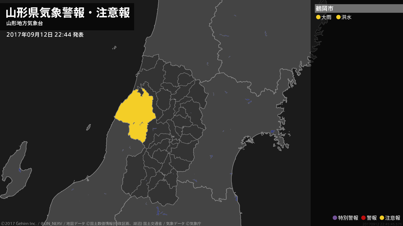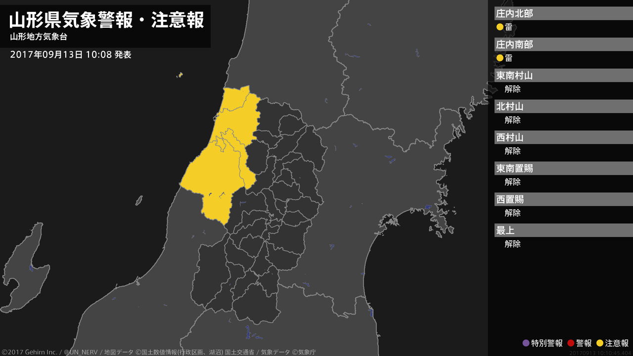 【山形県 気象警報(解除) 2017年09月12日 22:45】