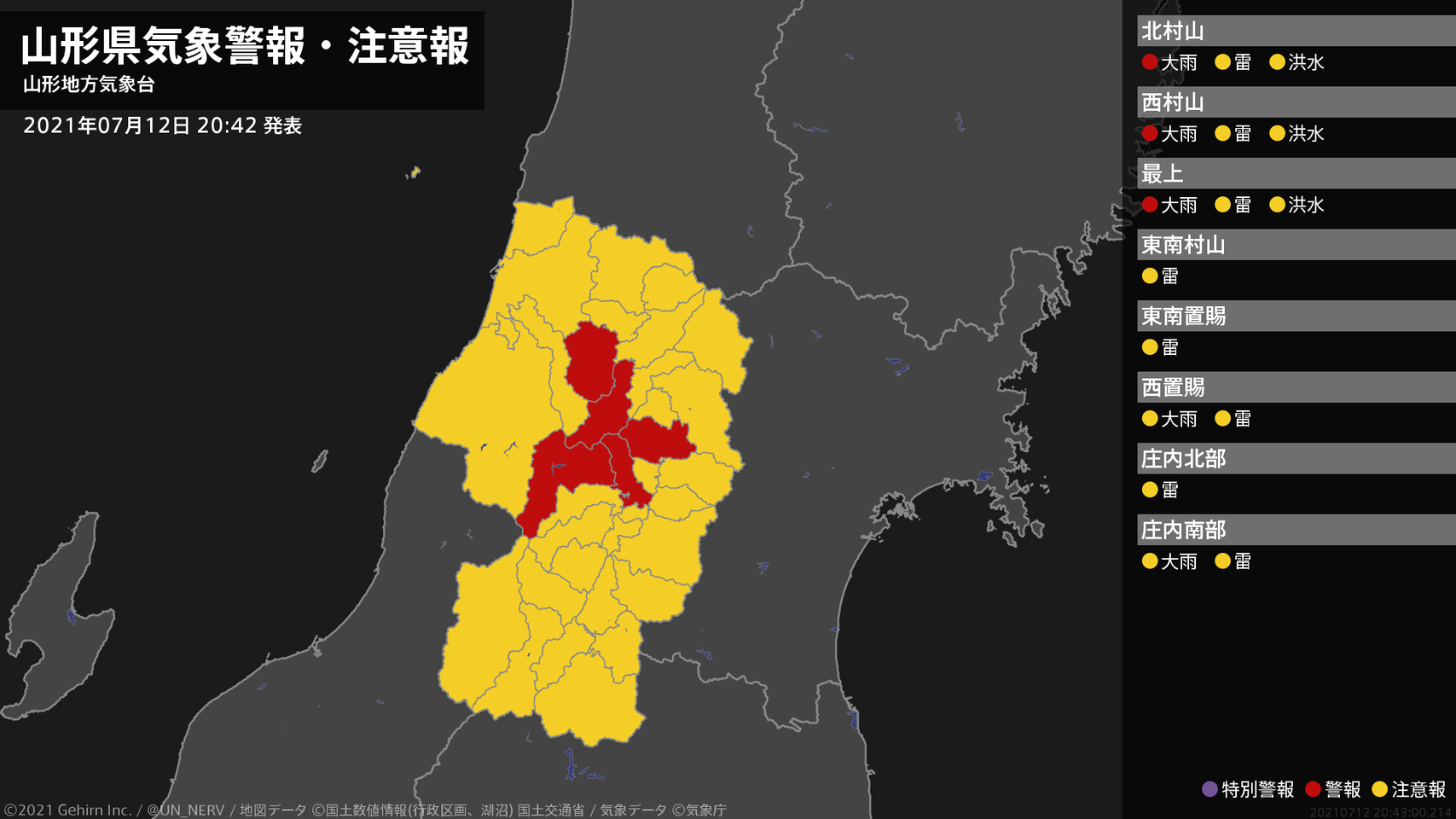 【山形県 土砂災害警戒情報 2021年07月12日 20:25】