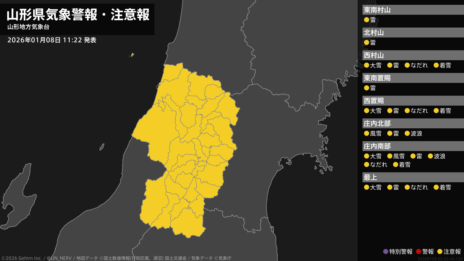 【暴風と高波に関する全般気象情報 2026年01月08日 17:07】
