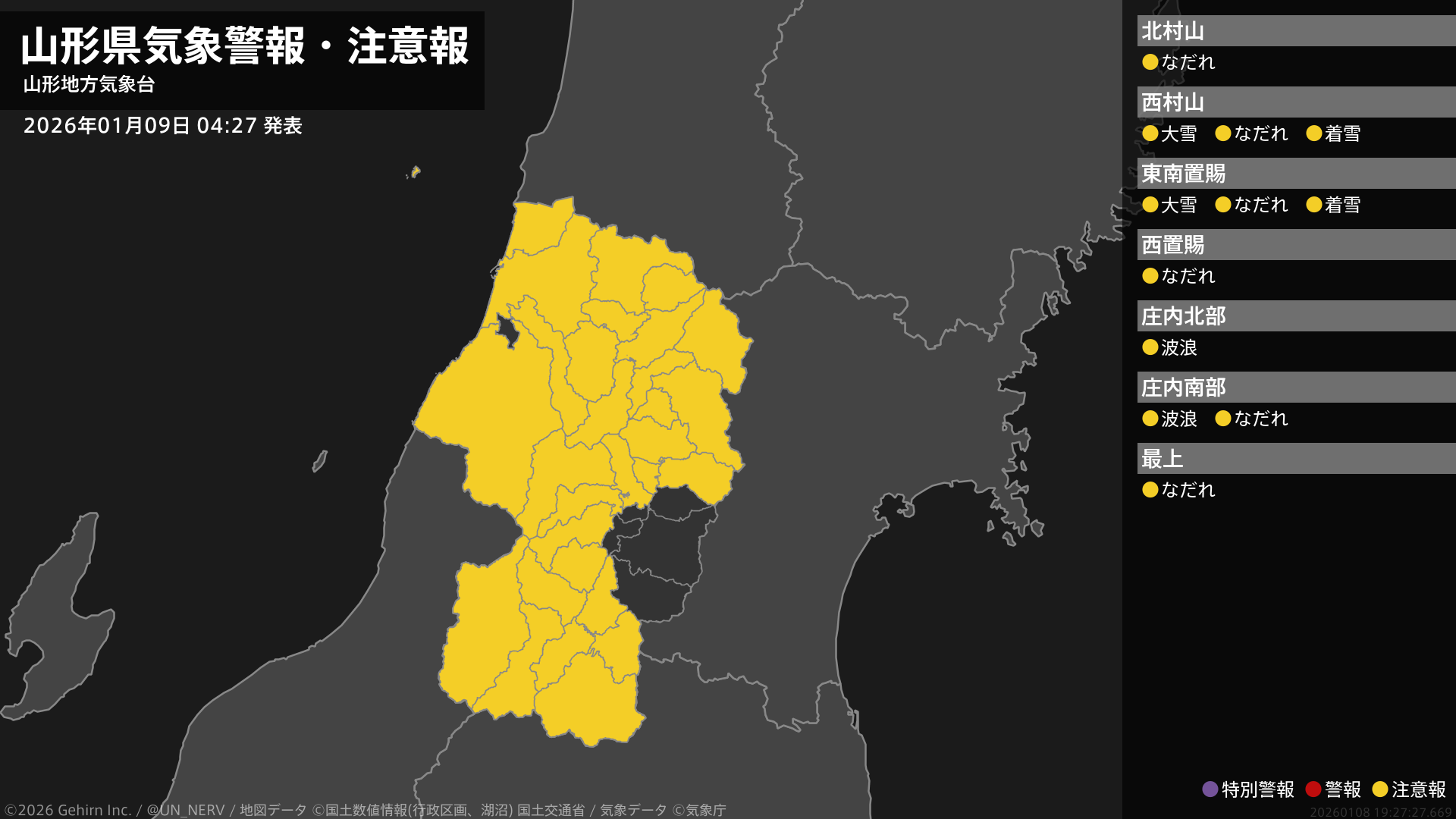 【暴風雪と高波及び大雪に関する全般気象情報 2026年01月09日 05:11】