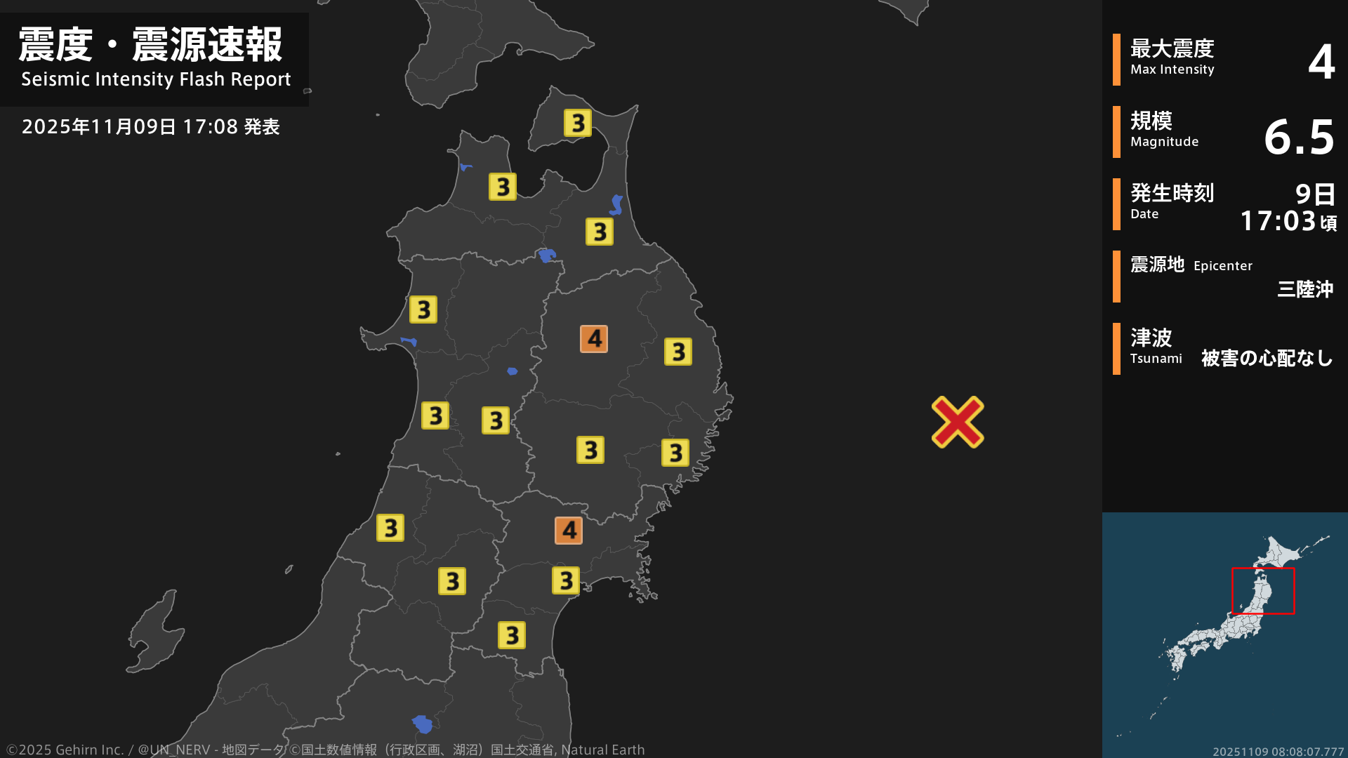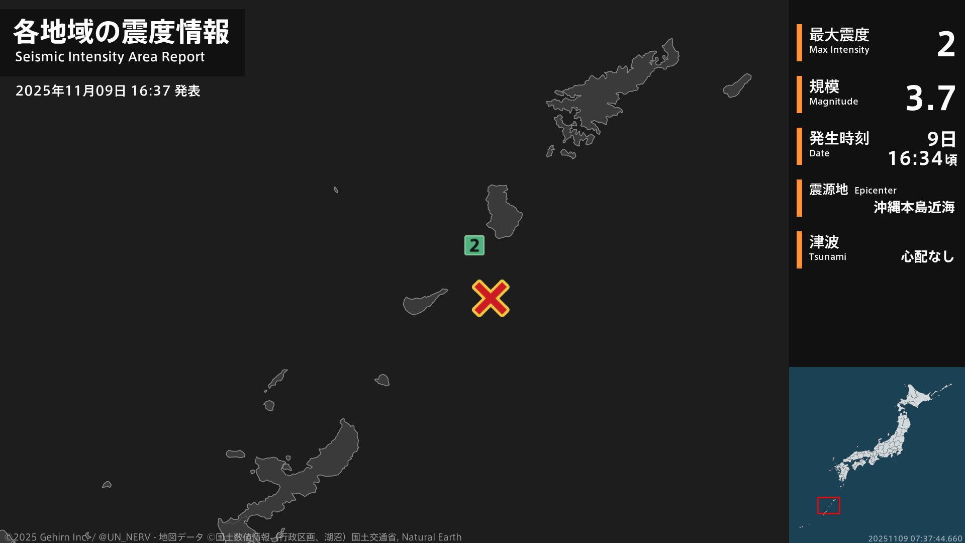 【地震情報 2025年11月9日】