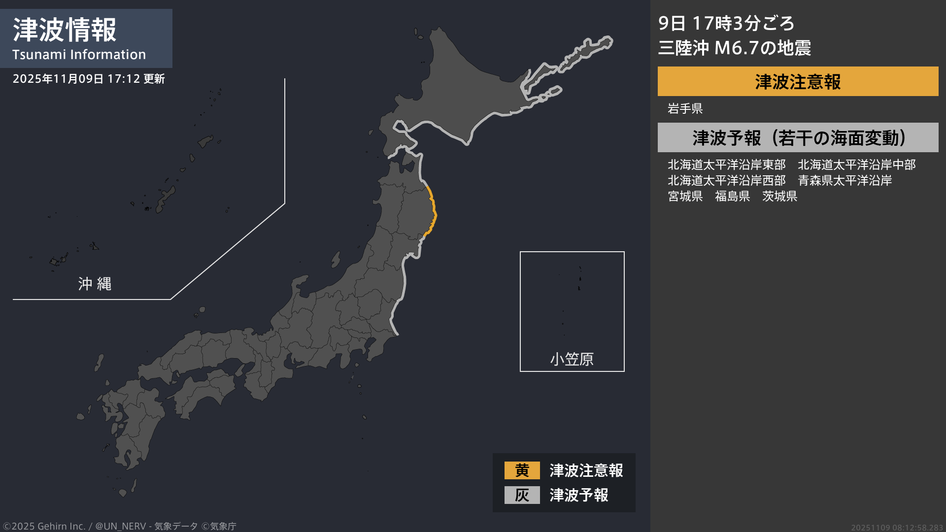 1/1【津波情報 2025年11月09日 17:12】