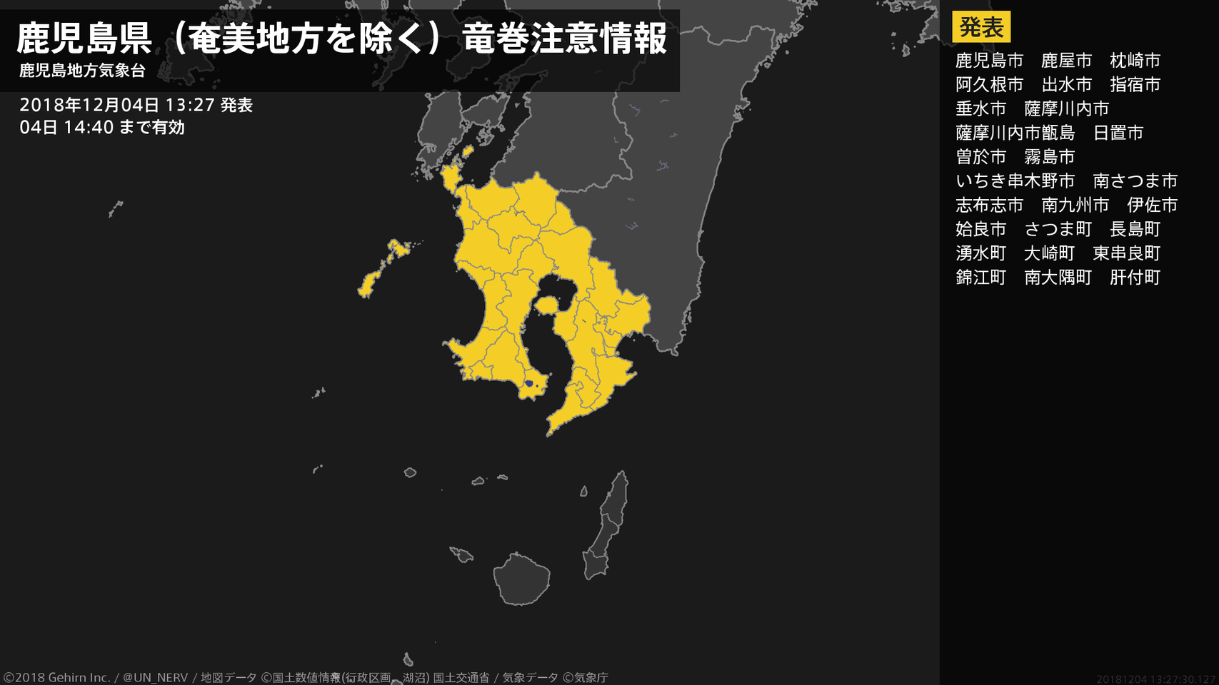 全国の竜巻注意情報を配信します。