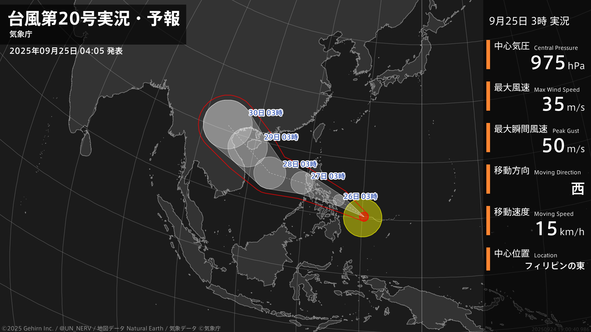 【台風第20号実況・予報 2025年09月25日 04:00】