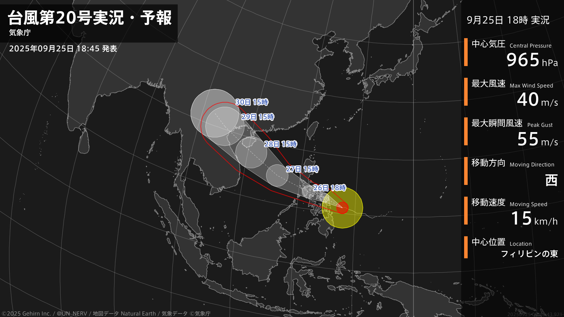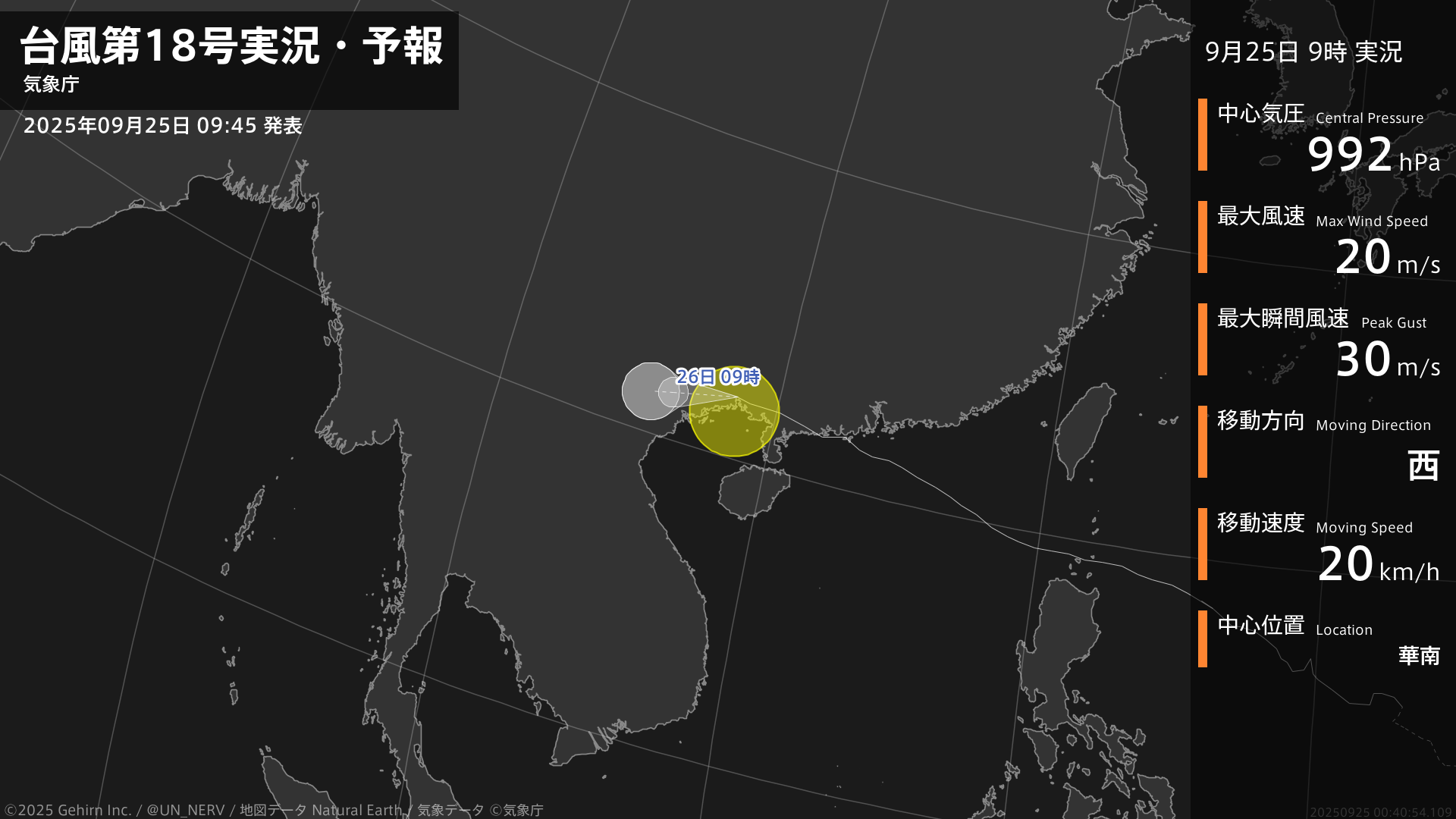 【台風第20号実況・予報 2025年09月25日 18:40】