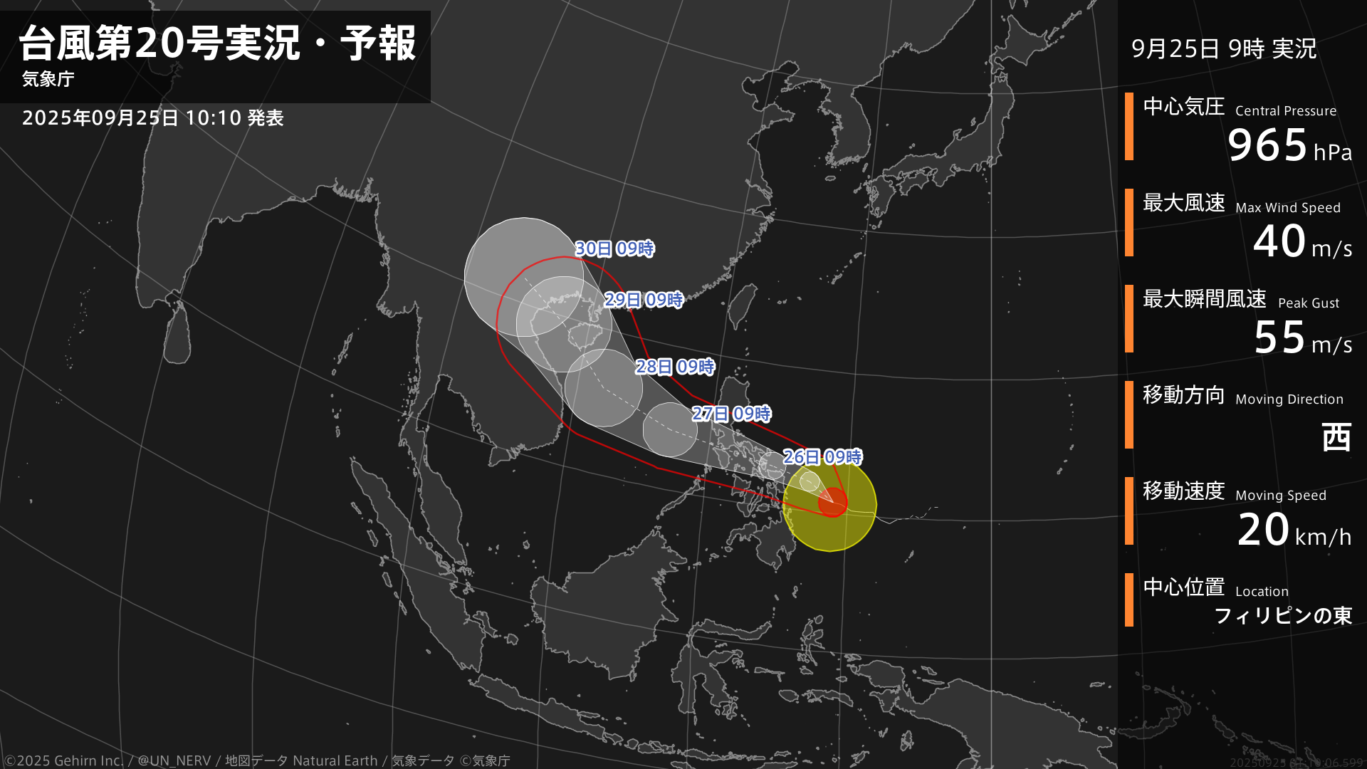 【台風第20号実況・予報 2025年09月25日 10:10】