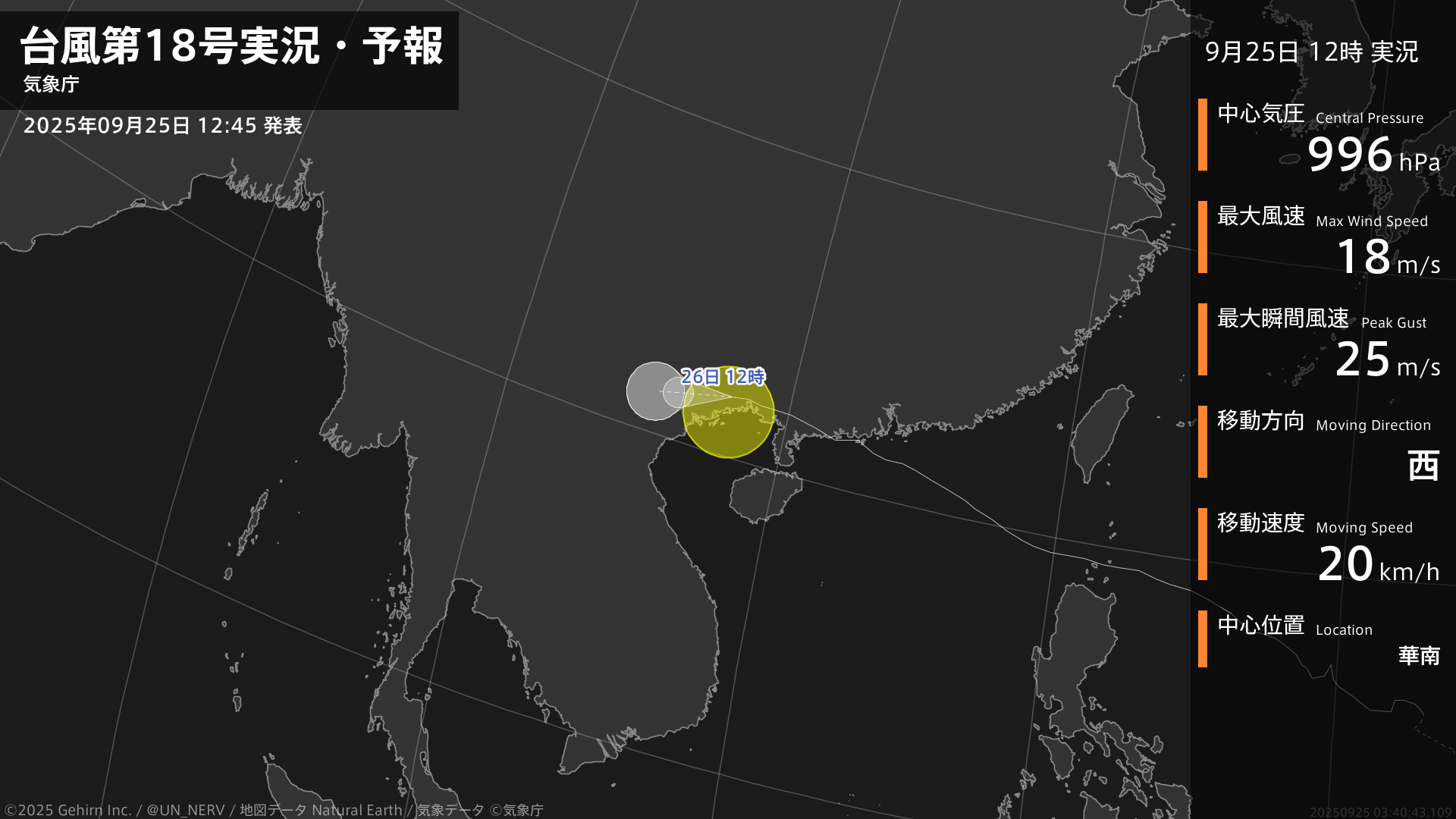 【台風第18号実況・予報 2025年09月25日 12:40】