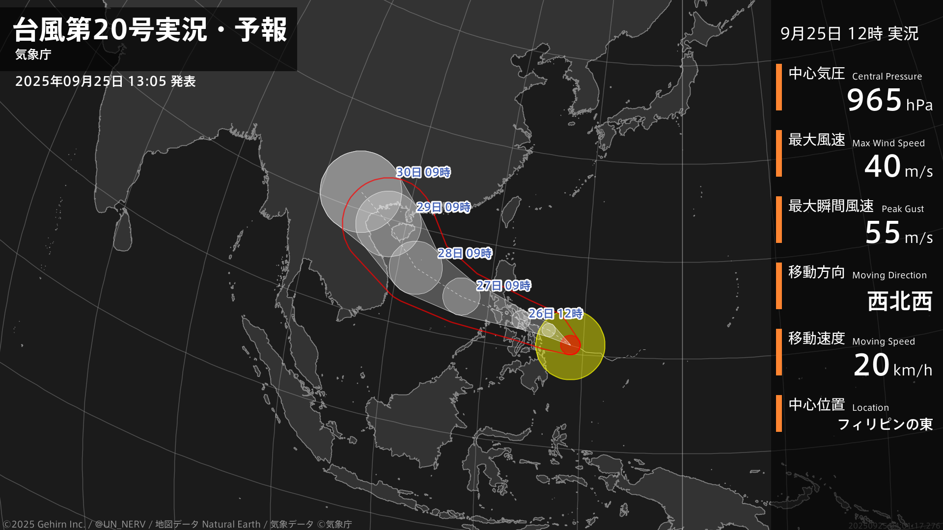 【台風第20号実況・予報 2025年09月25日 13:01】