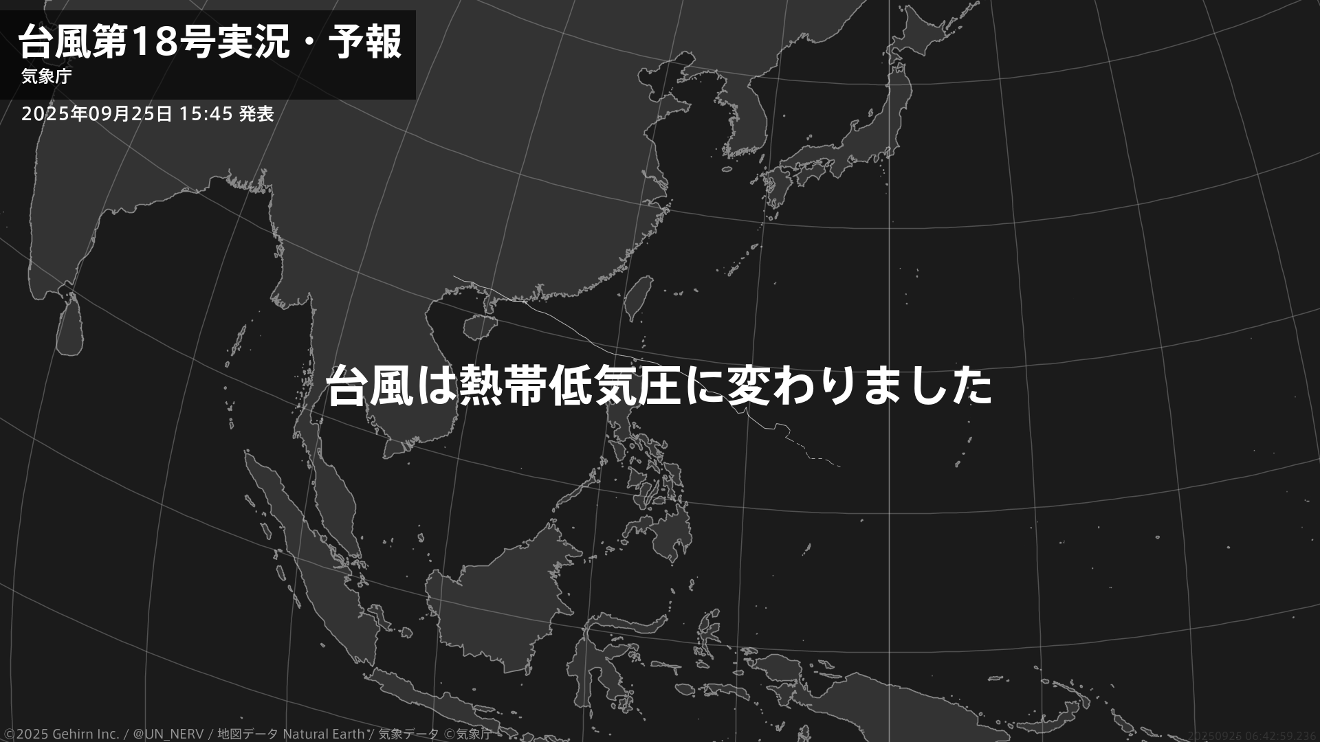 台風第18号(ラガサ)は熱帯低気圧に変わりました。