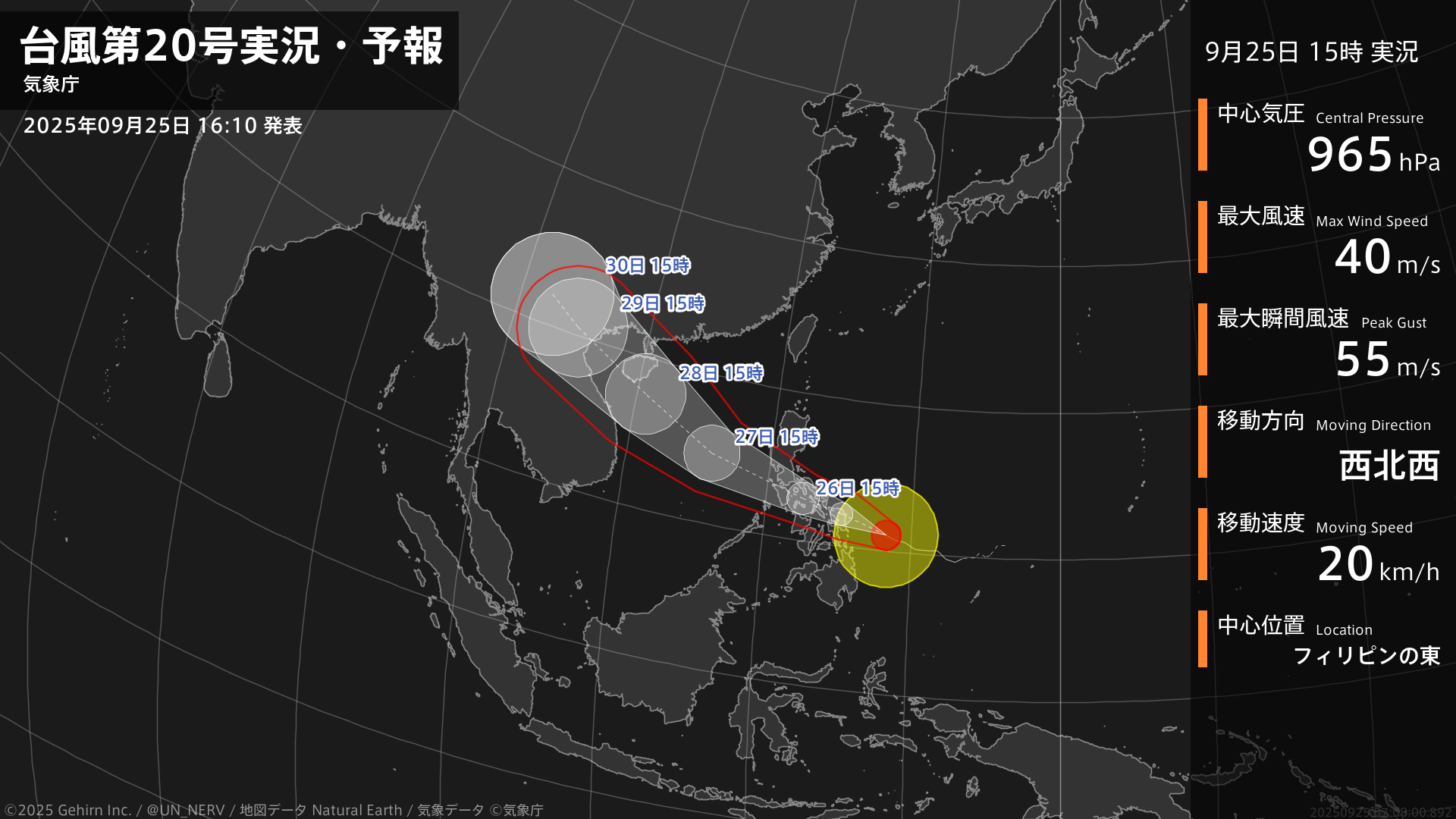 【台風第20号実況・予報 2025年09月25日 16:08】