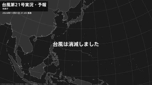 【台風第21号実況・予報 2024年11月01日 21:40】台風第21号(コンレイ)は温帯低気圧に変わりました。#台風情報