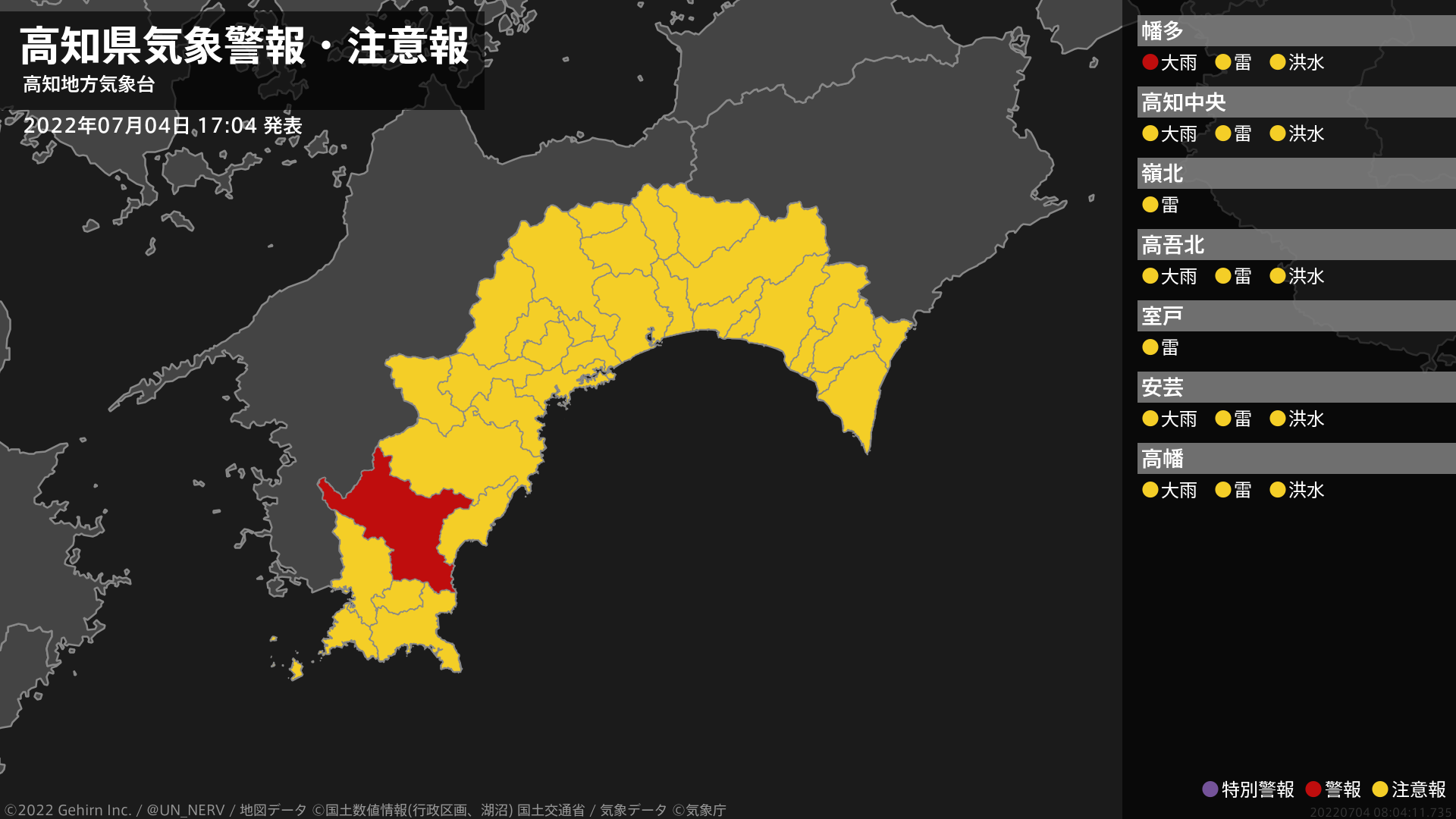 【愛媛県 気象警報 2022年07月04日 21:31】