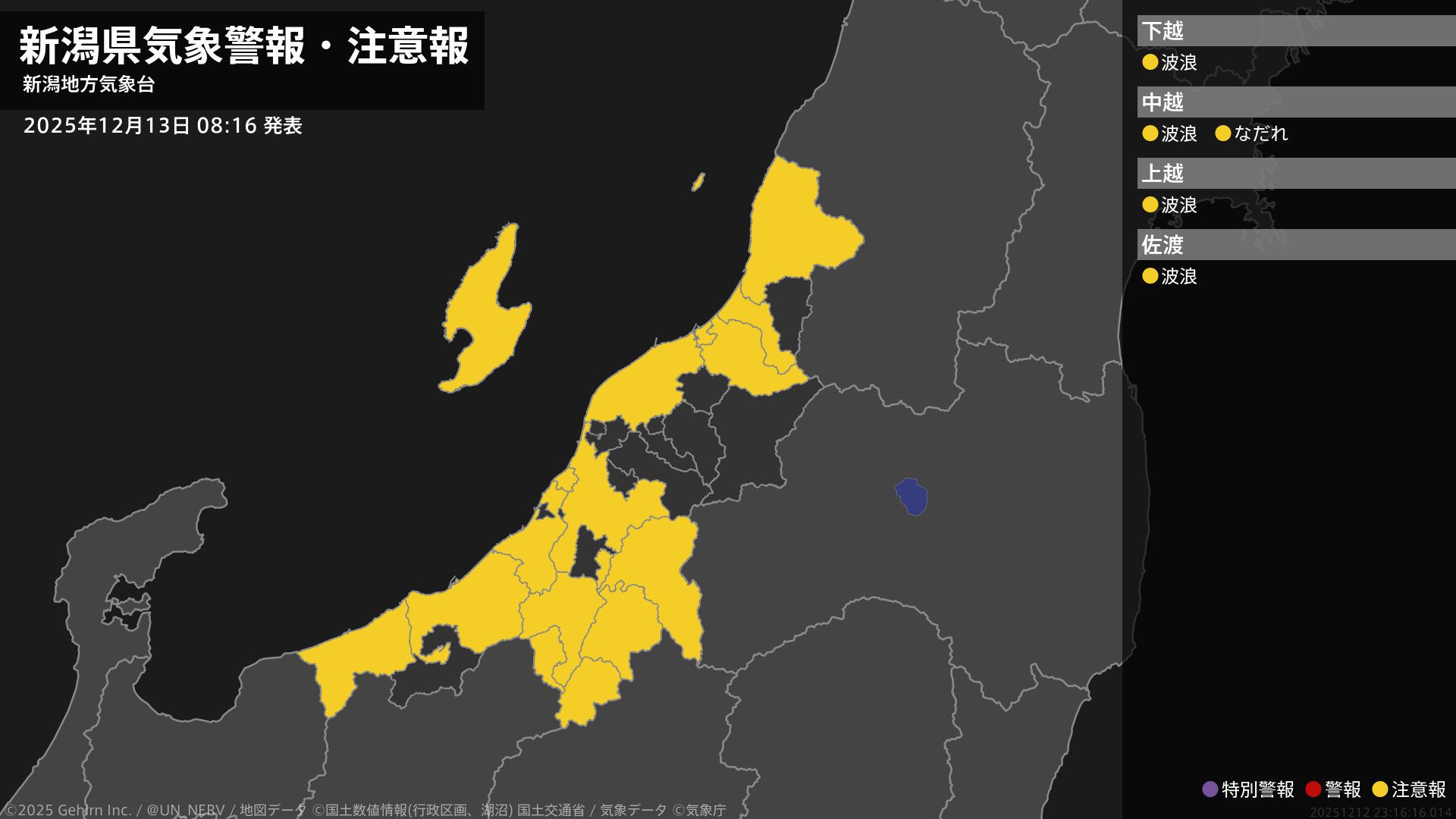 【暴風雪と高波及び大雪に関する全般気象情報 2025年12月13日 04:55】