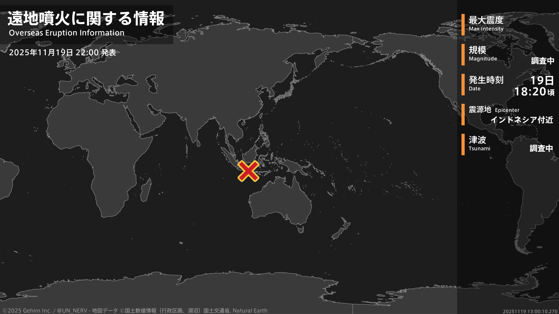 令和7年11月19日18時20分頃(日本時間)にスメル火山で大規模な噴火が発生しました(ダーウィン航空路火山灰情報センター(VAAC)による)。