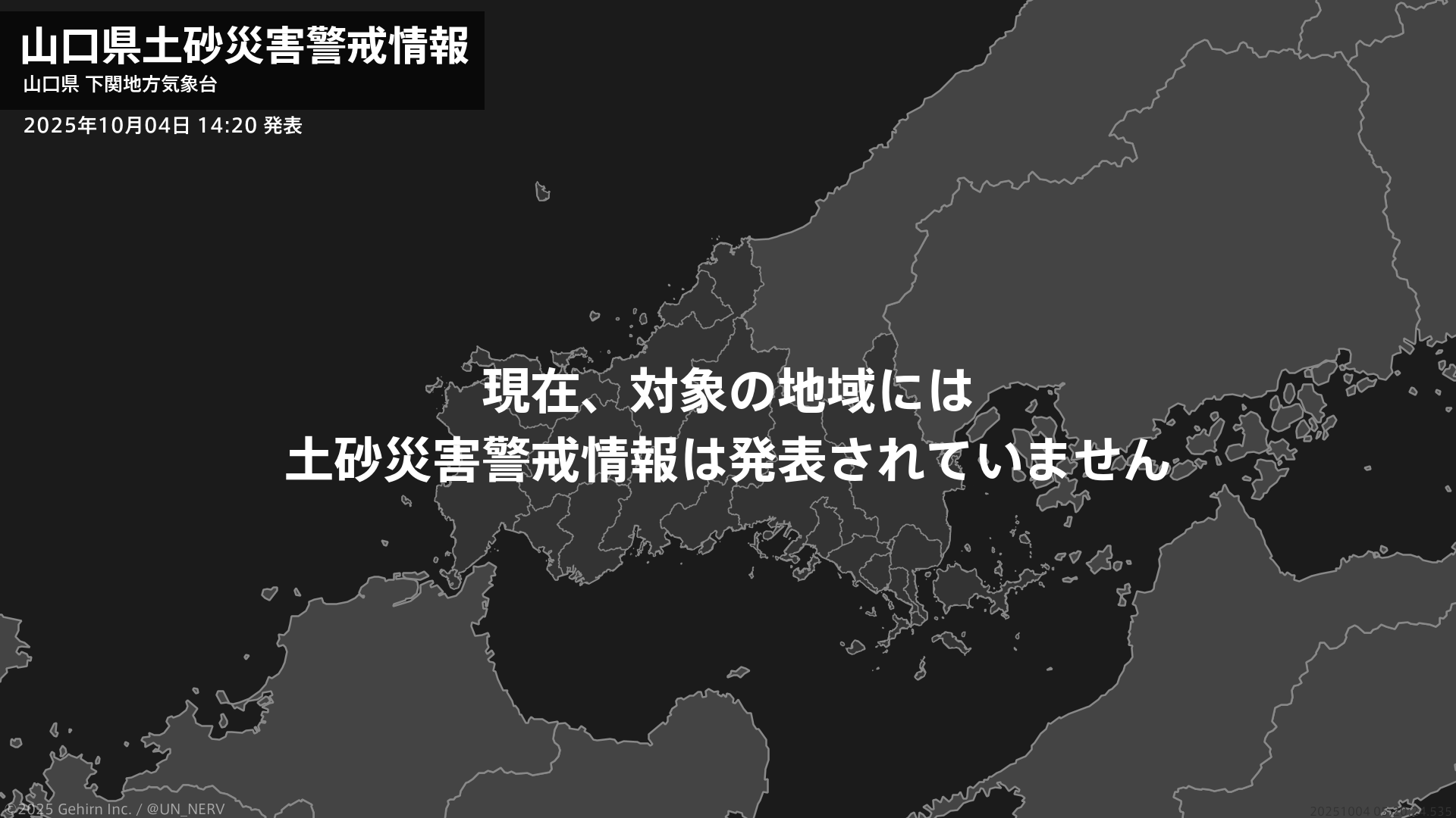 【山口県 土砂災害警戒情報 2025年10月04日 14:20】山口県に発表されていた土砂災害警戒情報はすべて解除されました。#土砂災害警戒情報 #山口県