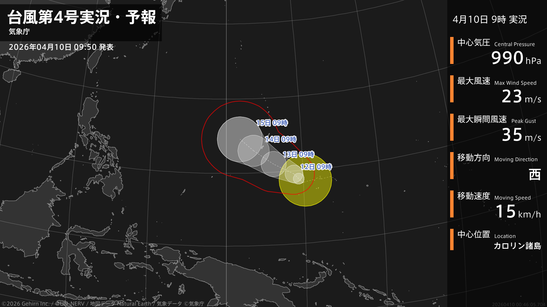 【台風第4号実況・予報 2026年04月10日 04:26】