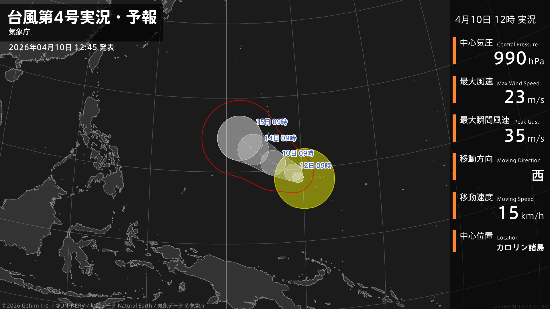 【台風第4号実況・予報 2026年04月10日 12:41】